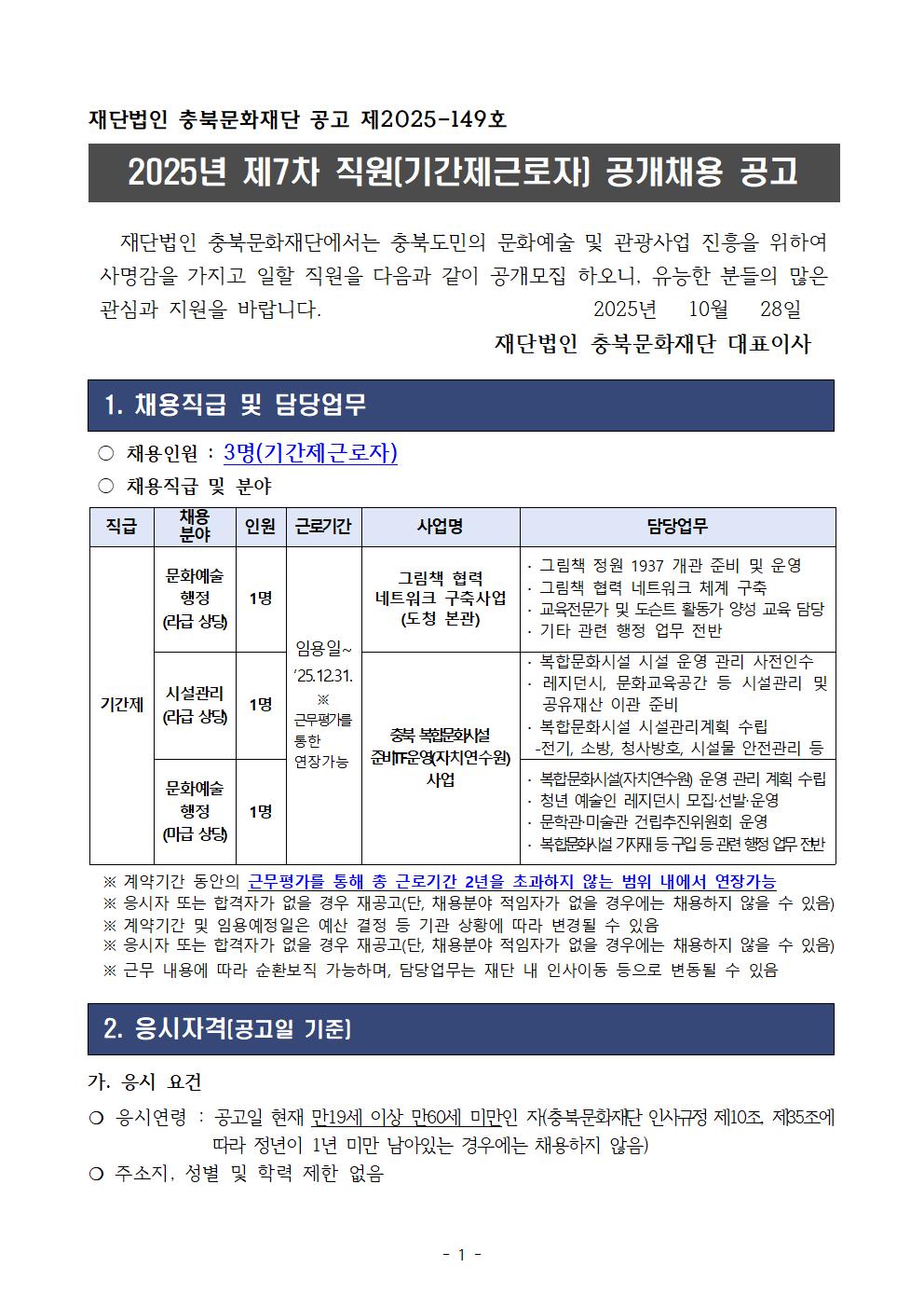 | 2025년 제7차 직원(기간제근로자_라급,마급 상당) 공개채용 공고 | |||||