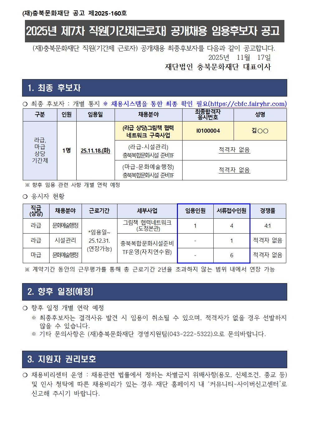 | 2025년 제7차 직원(기간제근로자-라급,마급 상당) 공개채용 임용후보자 공고 | |||||