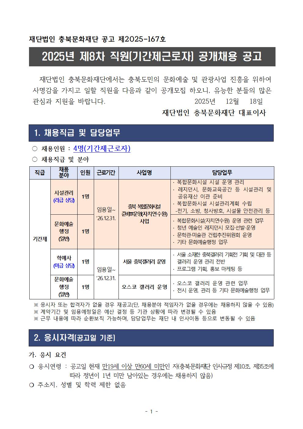 | 2025년 제8차 직원(기간제근로자_라급, 마급 상당, 일반) 공개채용 공고 | |||||