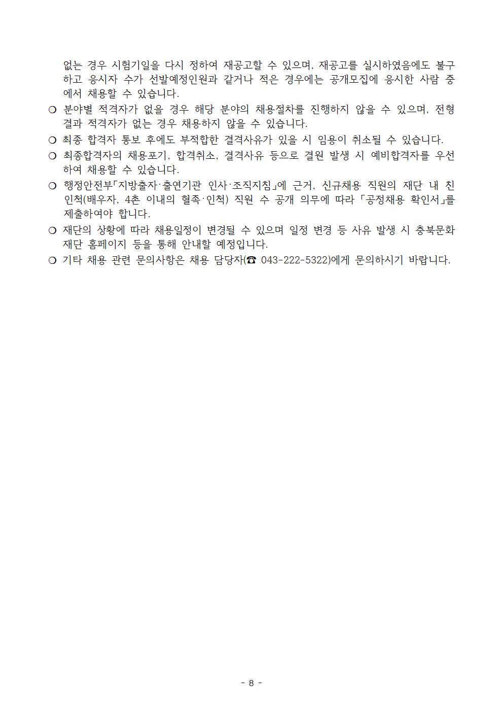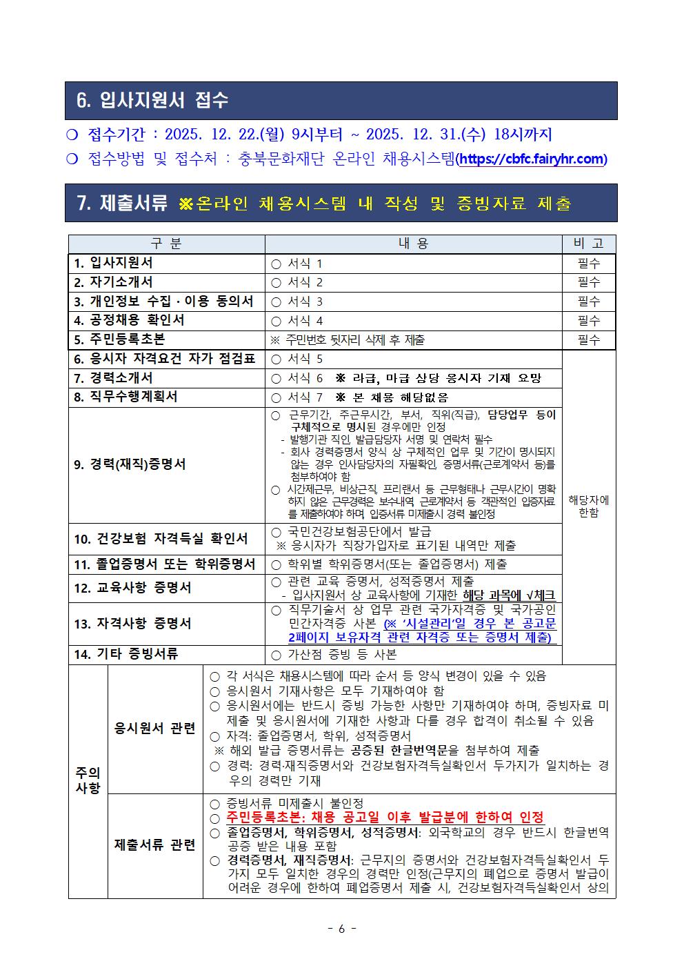 ※ 마감일, 마감시간 유의하여 충북문화재단 온라인 채용시스템(https://cbfc.fairyhr.com) 으로 지원!