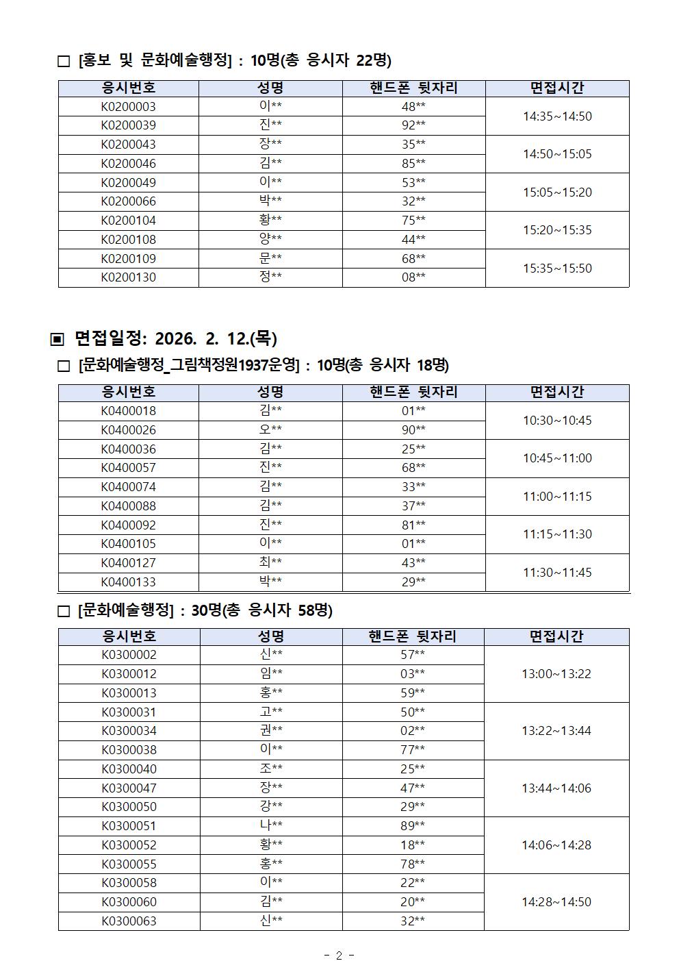 (분야별 면접일 상이하오니 유의하시기 바랍니다)