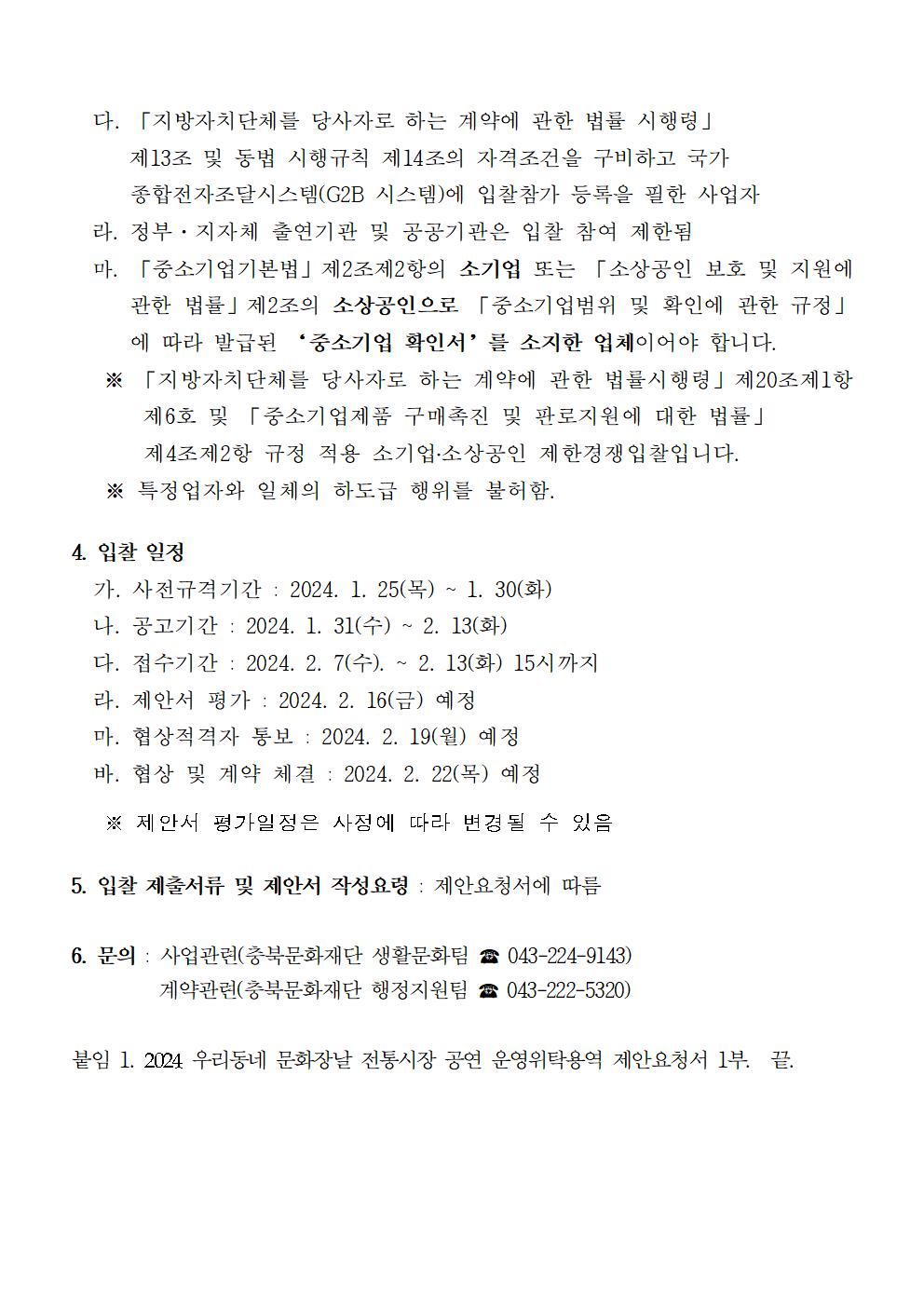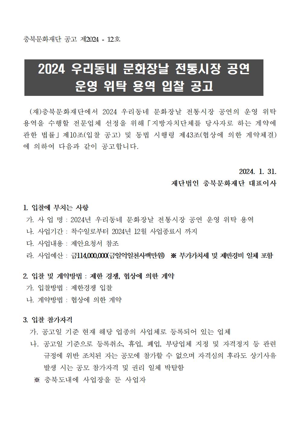 | 2024 우리동네 문화장날 전통시장 공연 운영위탁 용역 입찰공고 | |||||