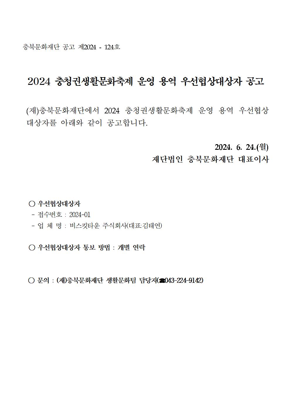 | 2024 충청권생활문화축제 운영 용역 우선협상대상자 공고 | |||||