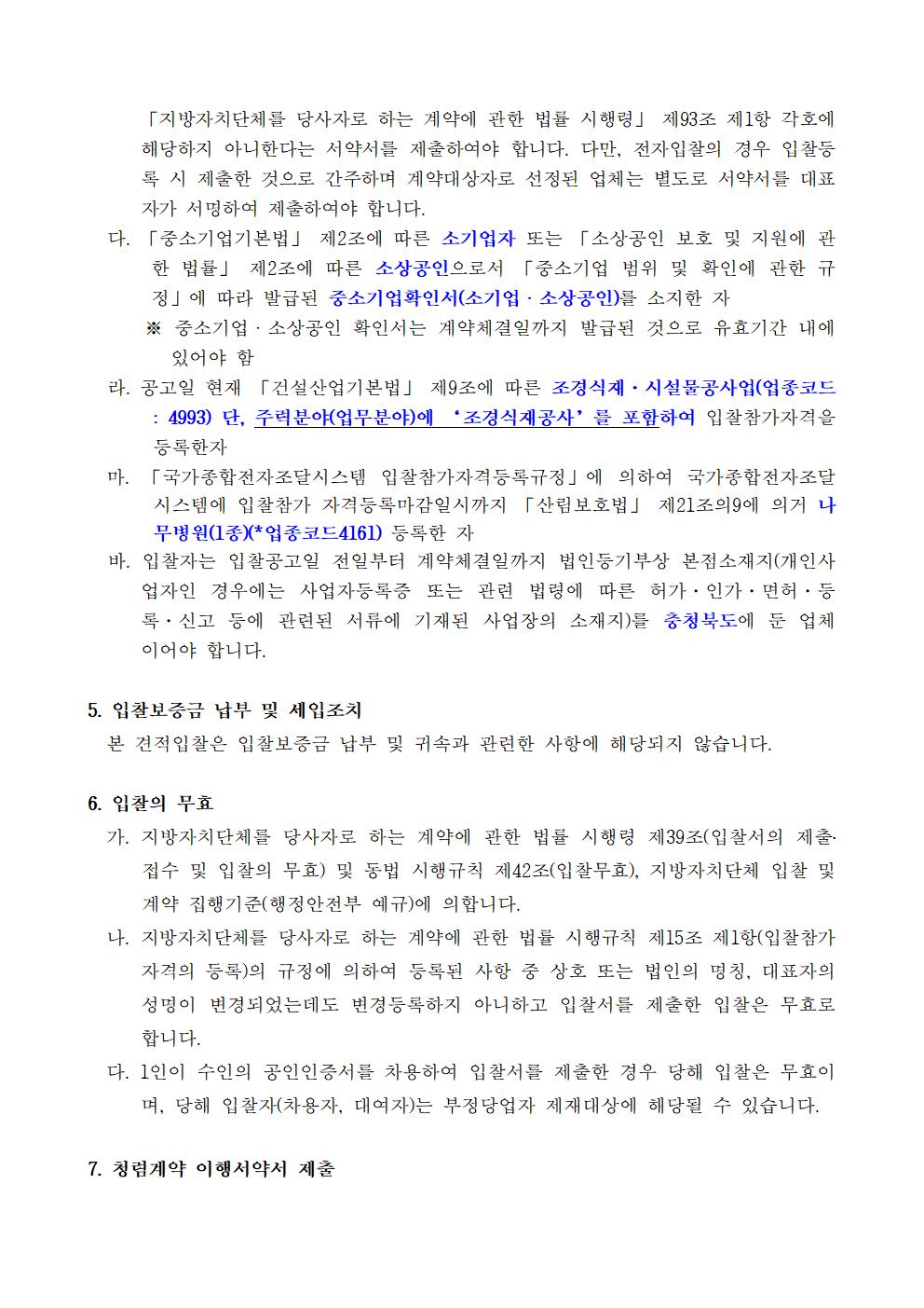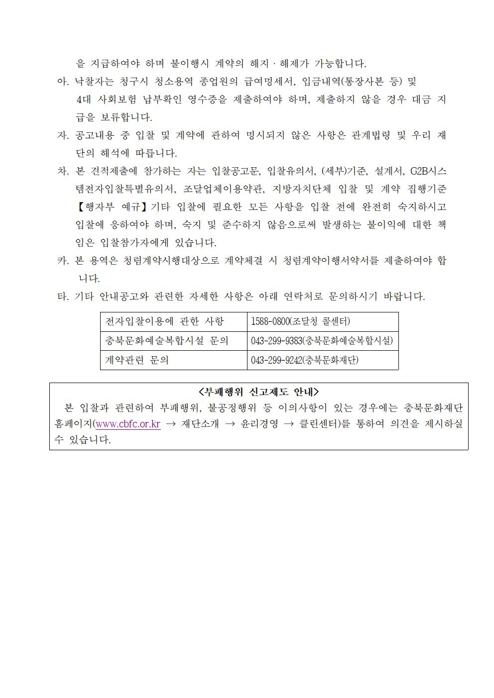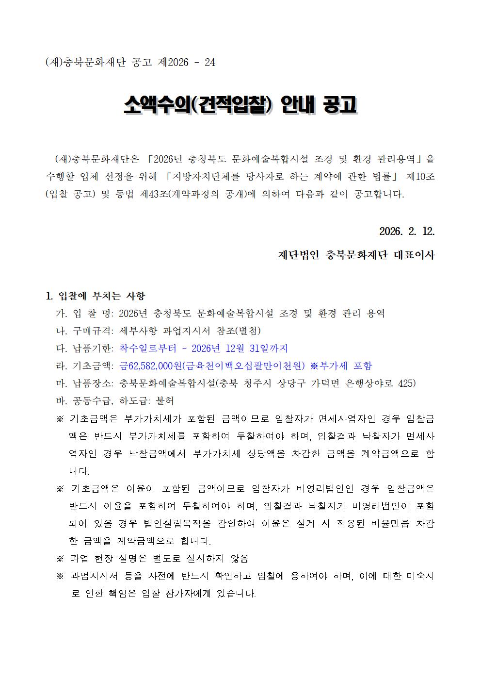 | 2026년 충청북도 문화예술복합시설 조경 및 환경 관리 용역 소액수의(견적입찰) 안내 공고 | |||||