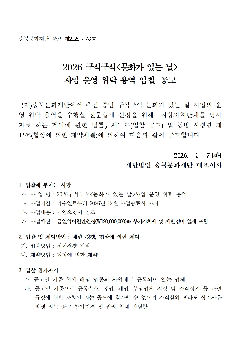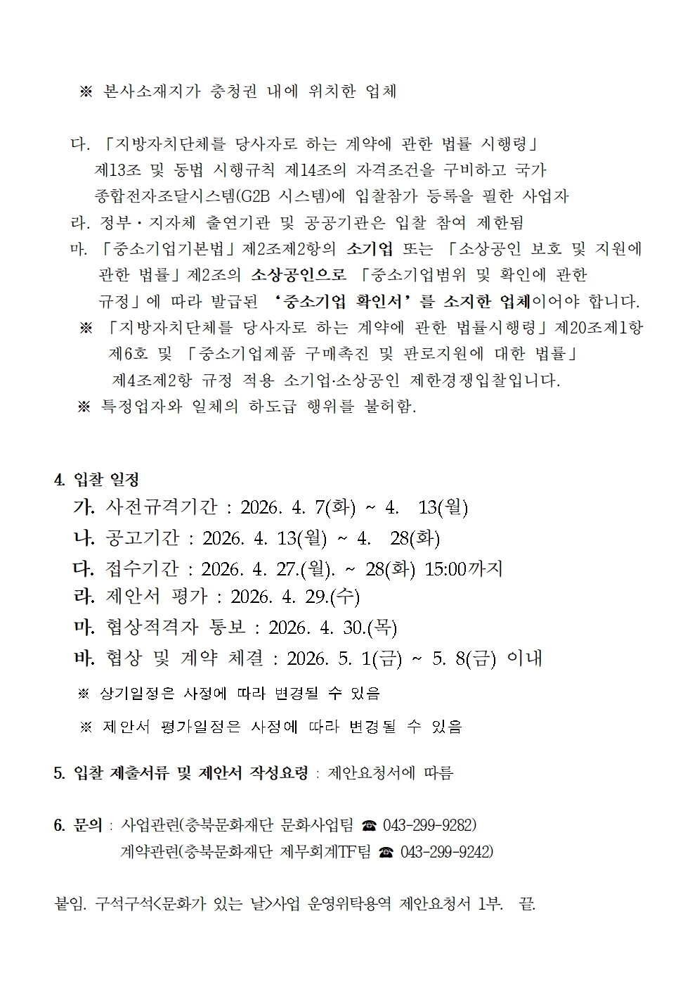 | 작성자 | 충북문화재단 | 등록일 | 2026/04/07 | 조회 | 4 |