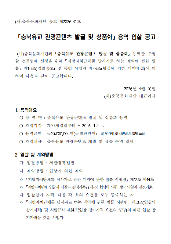| 「충북유교 관광콘텐츠 발굴 및 상품화」 용역 입찰 공고 | |||||