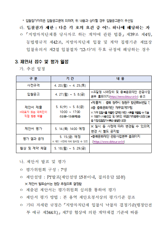 | 다음글 | 「충북유교 관광콘텐츠 발굴 및 상품화」용역 업체 선정 제안서 평가위원(후보... |