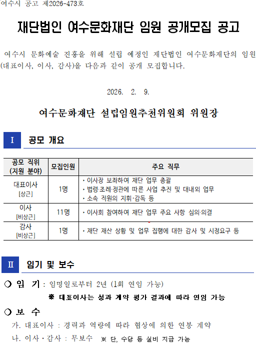 | [여수문화재단] 임원 공개모집 공고 | |||||