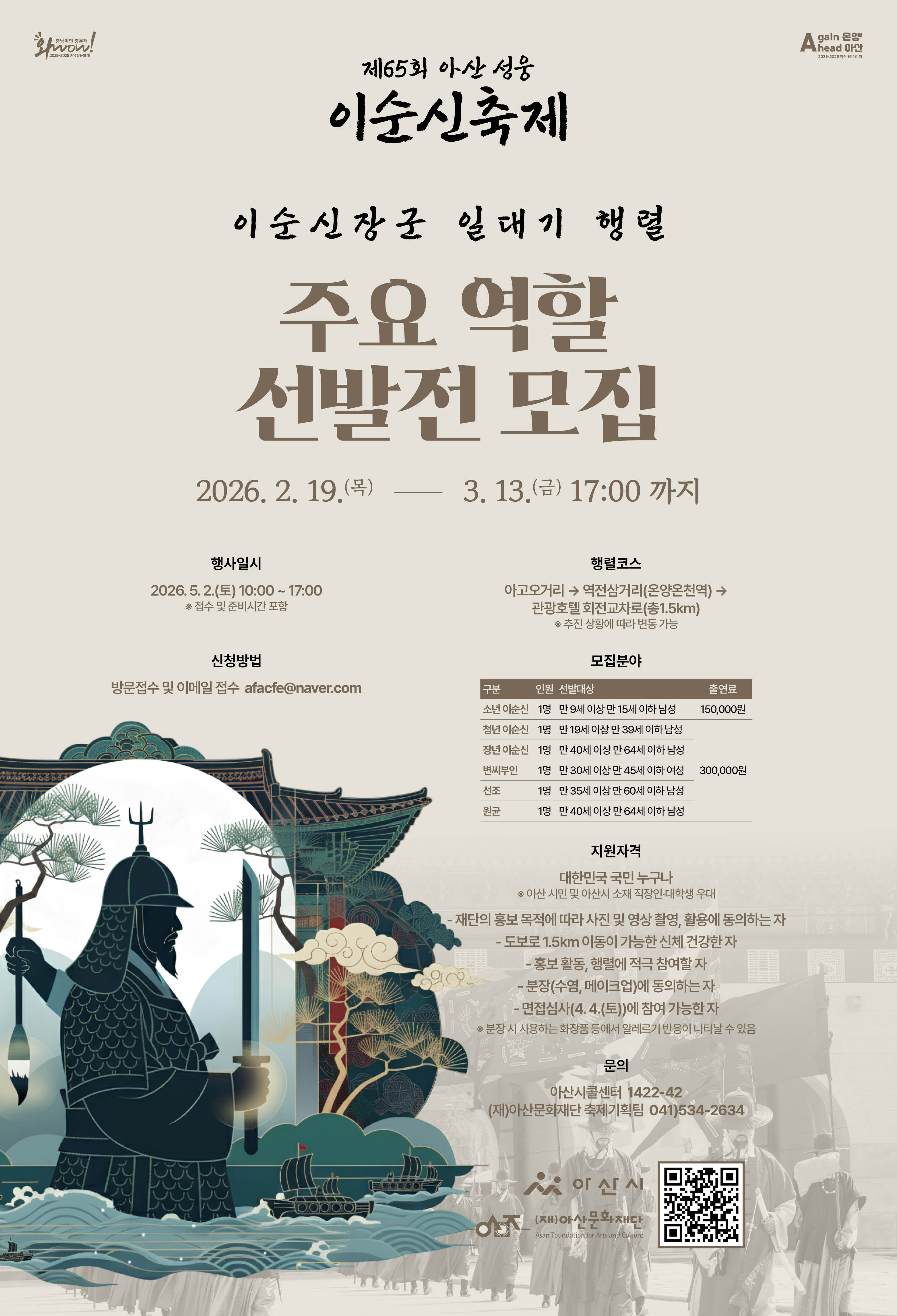 | [재단법인아산문화재단] <제65회 아산 성웅 이순신축제> 이순산장군 일대기 행렬 주요 역할 선발전 | |||||