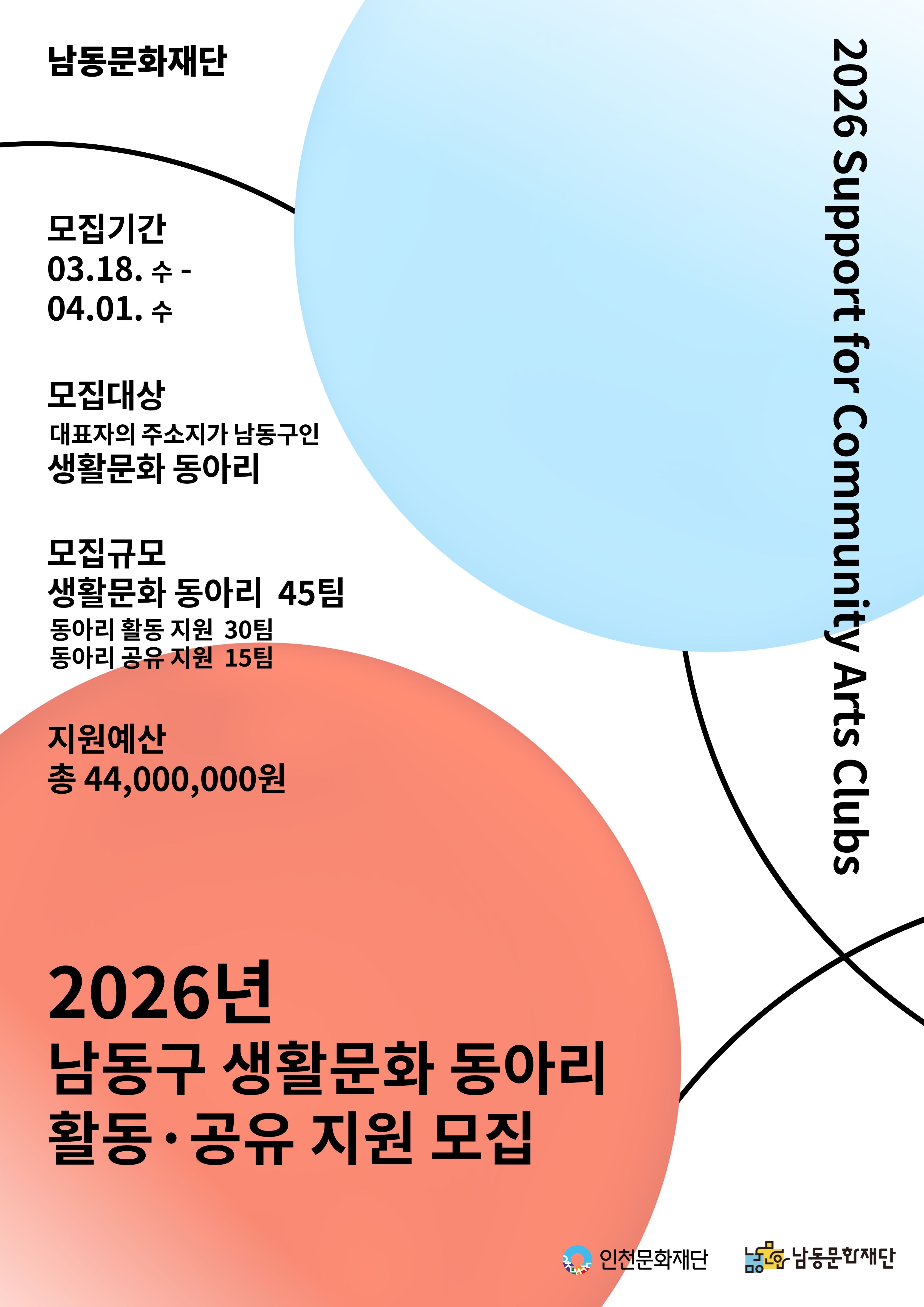 | [남동문화재단] 2026년 남동문화재단 생활문화 동아리 활동·공유 지원 모집 | |||||