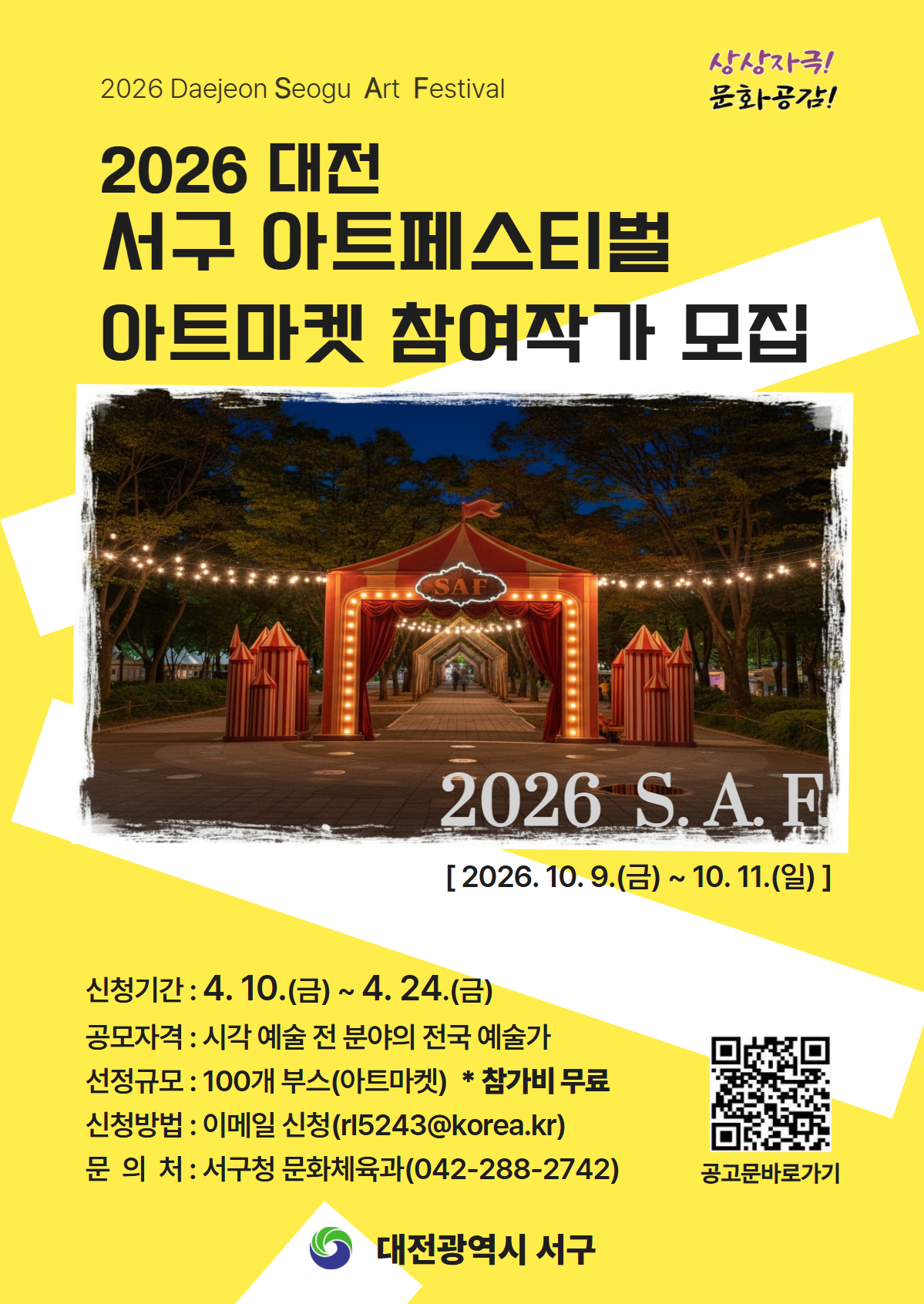| [대전광역시] 2026 대전 서구 아트페스티벌 참여작가 모집 | |||||