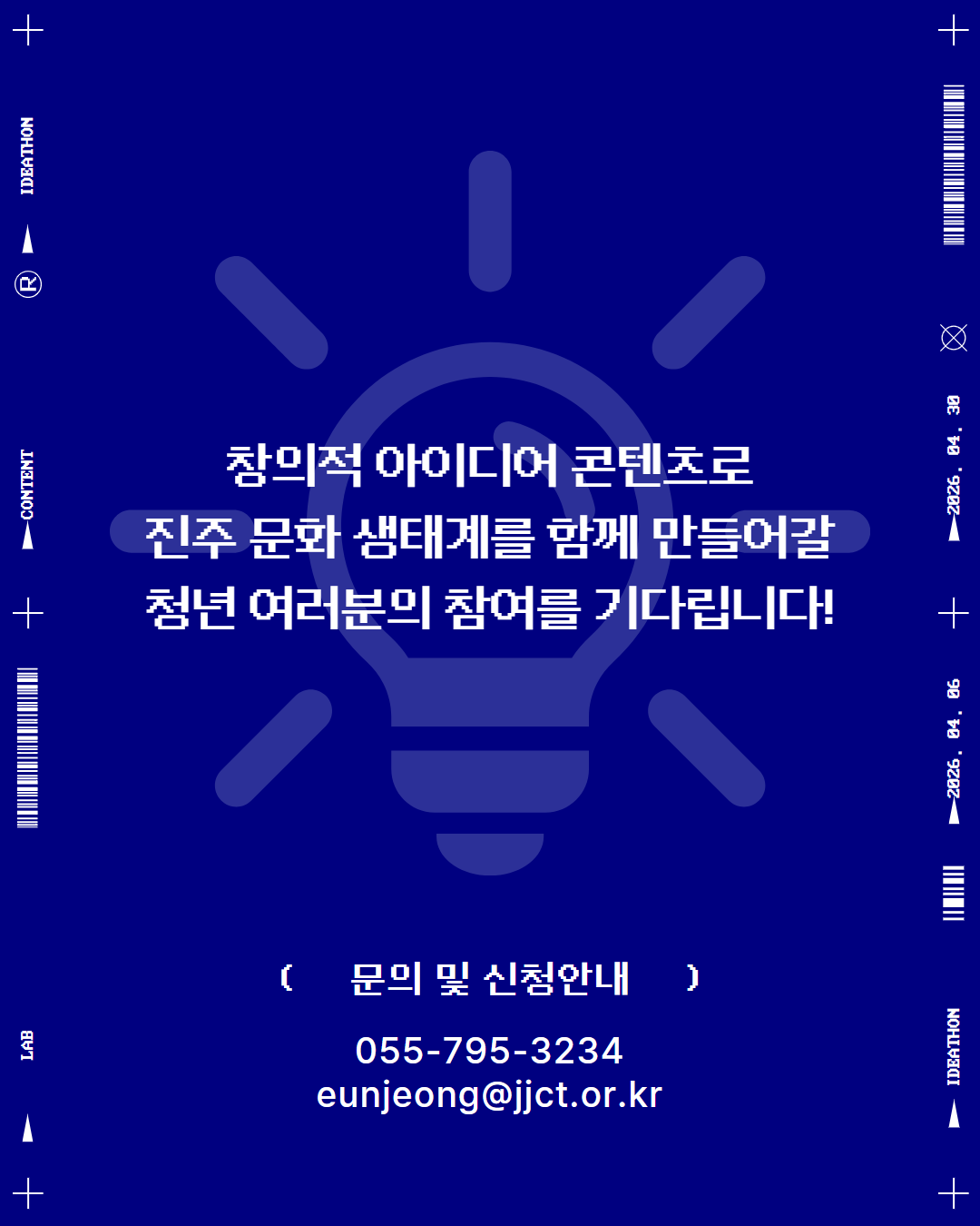 | [(재)진주문화관광재단] 2026 청년 아이디어콘텐츠 랩 참가자 모집 | |||||