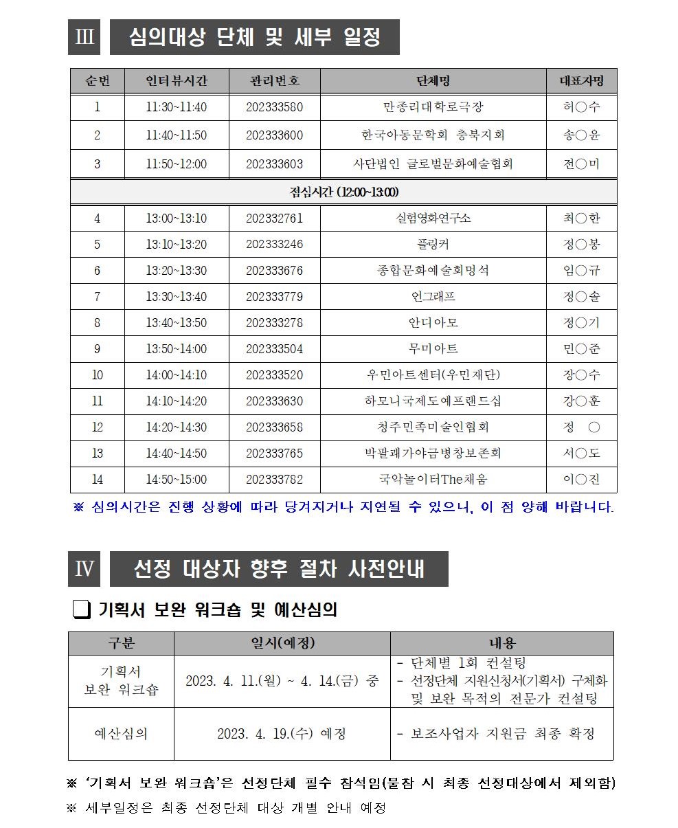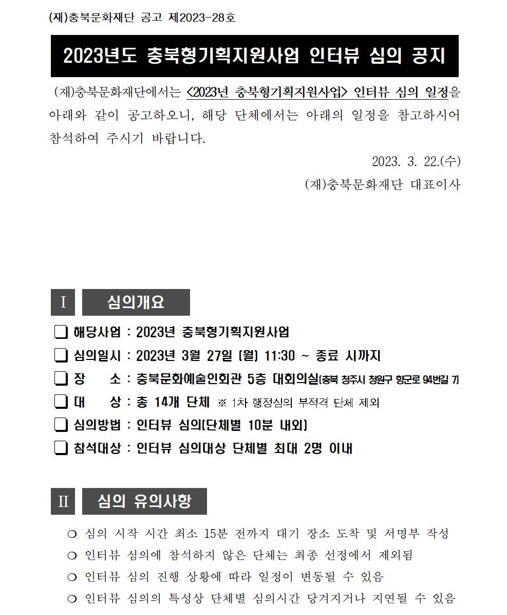 | 2023년도 충북형기획지원사업 인터뷰 심의 공지 | |||||