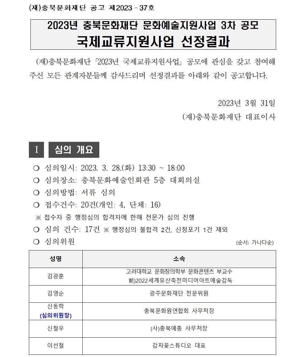 | 작성자 | 충북문화재단 | 등록일 | 2023/03/31 | 조회 | 2289 |