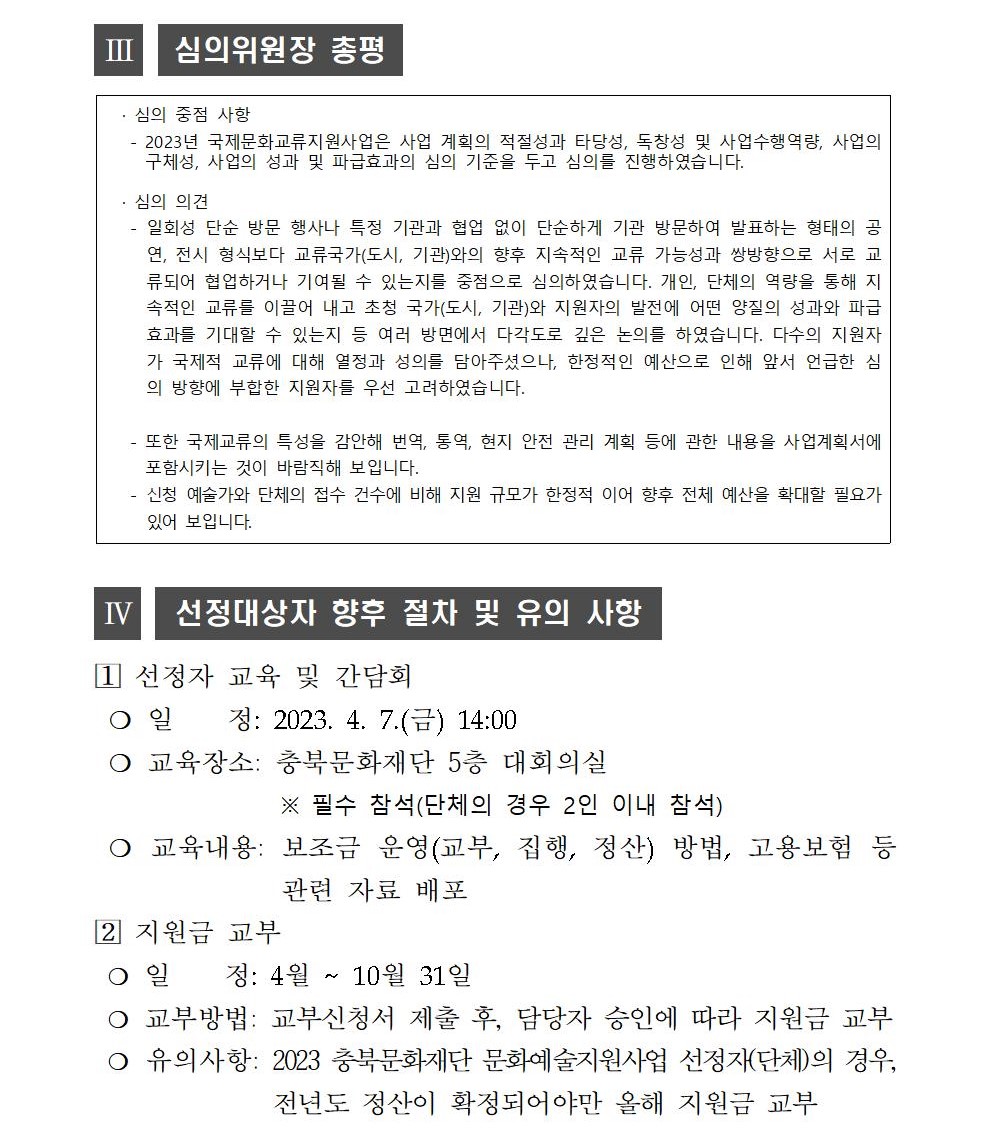 | 2023년 국제교류지원사업 공모 선정결과 | |||||