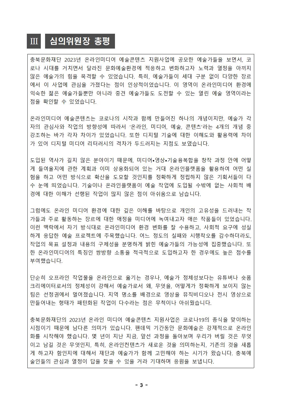 | 2023년 온라인미디어 예술콘텐츠 지원사업 공모 선정결과 | |||||