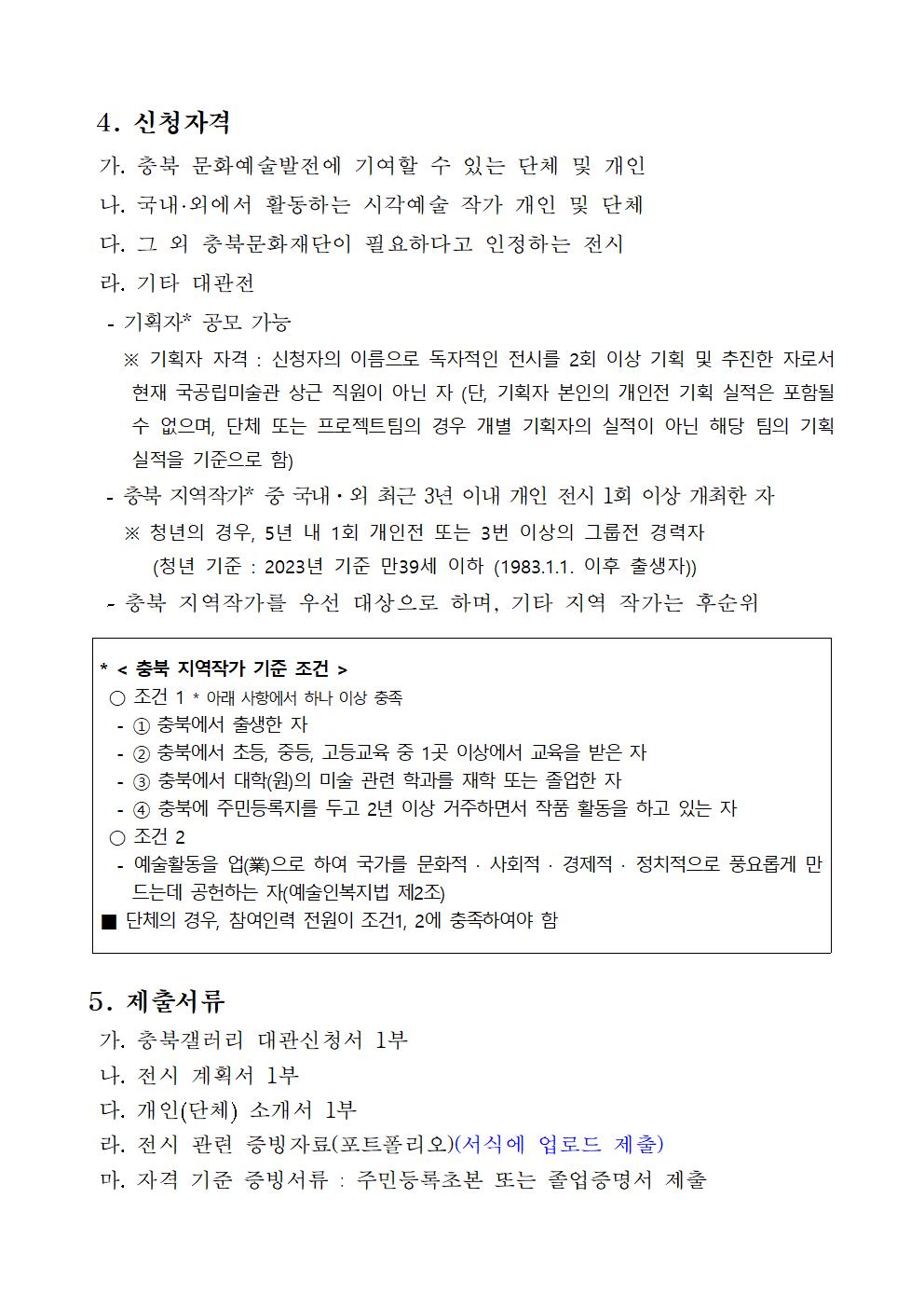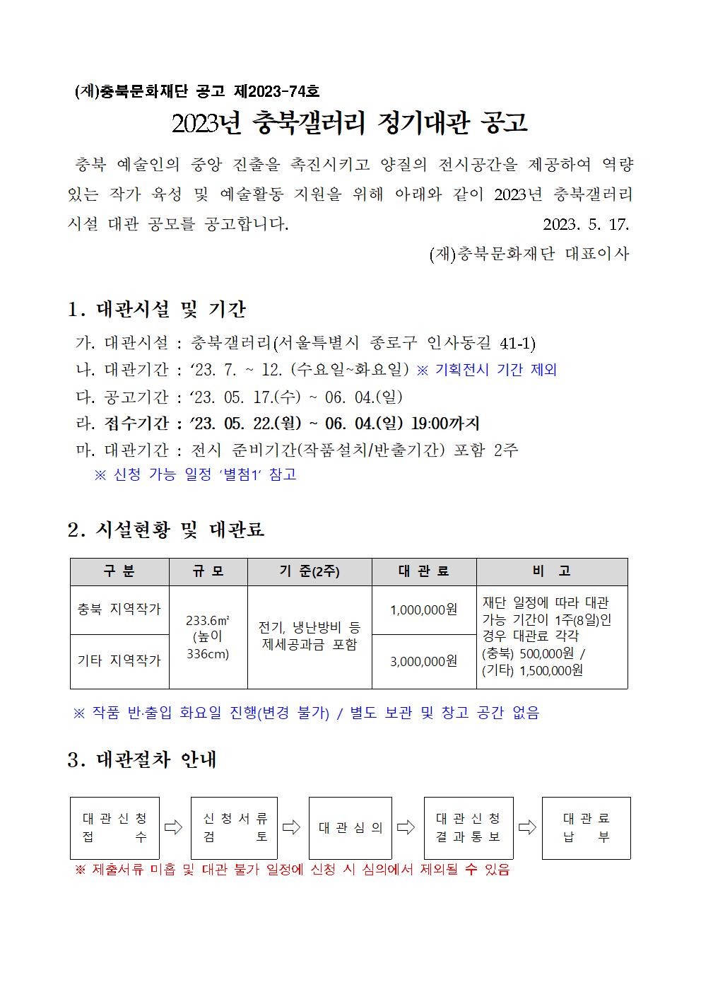 | 2023년 충북갤러리 정기대관 공고 | |||||