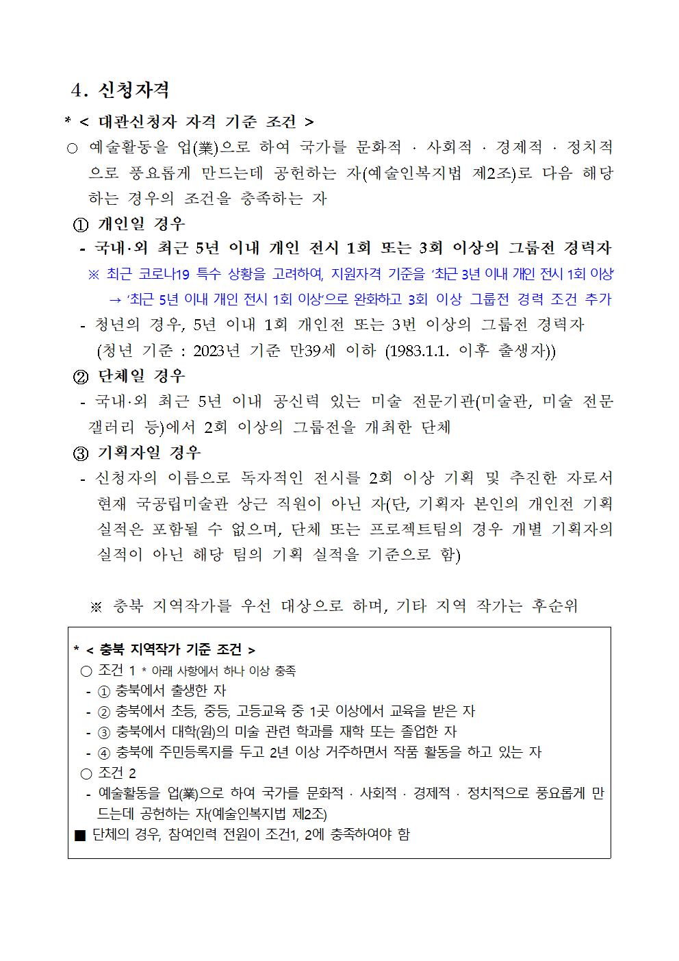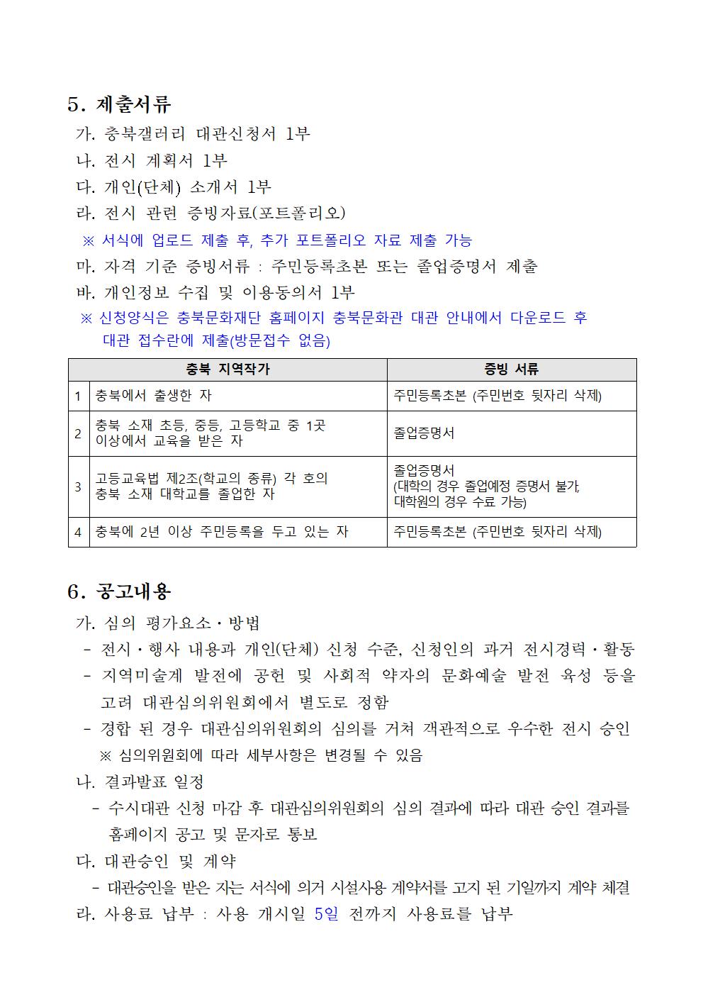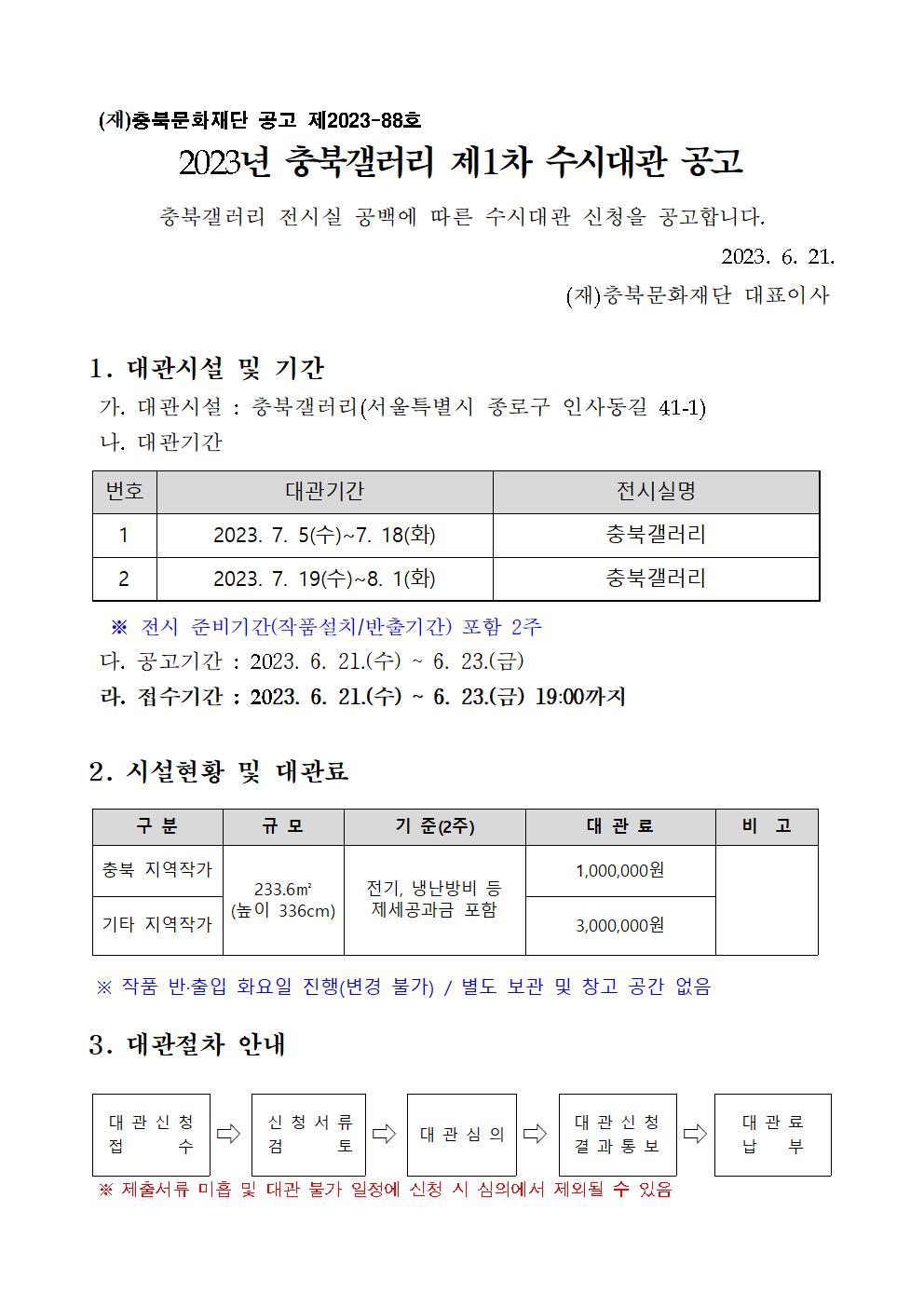 | 2023년 충북갤러리 제1차 수시대관 공고 | |||||