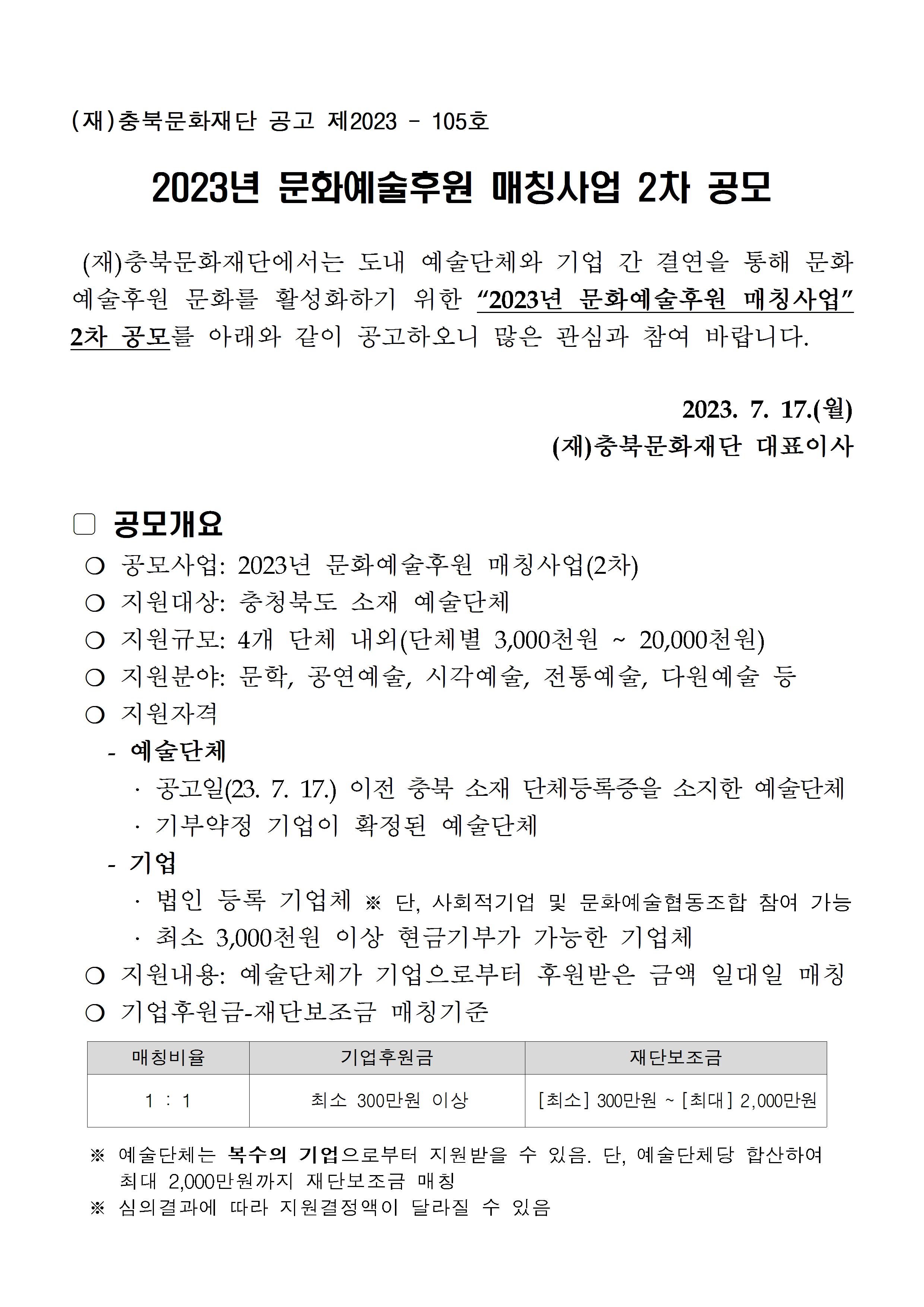 | 2023년 문화예술후원 매칭사업 2차 공모 | |||||