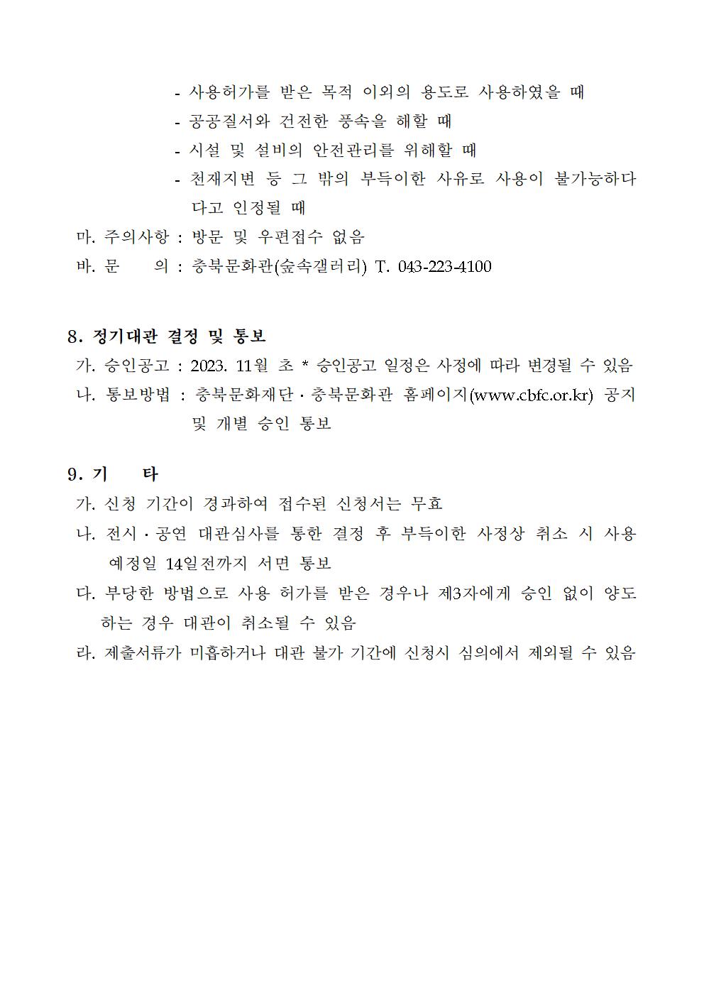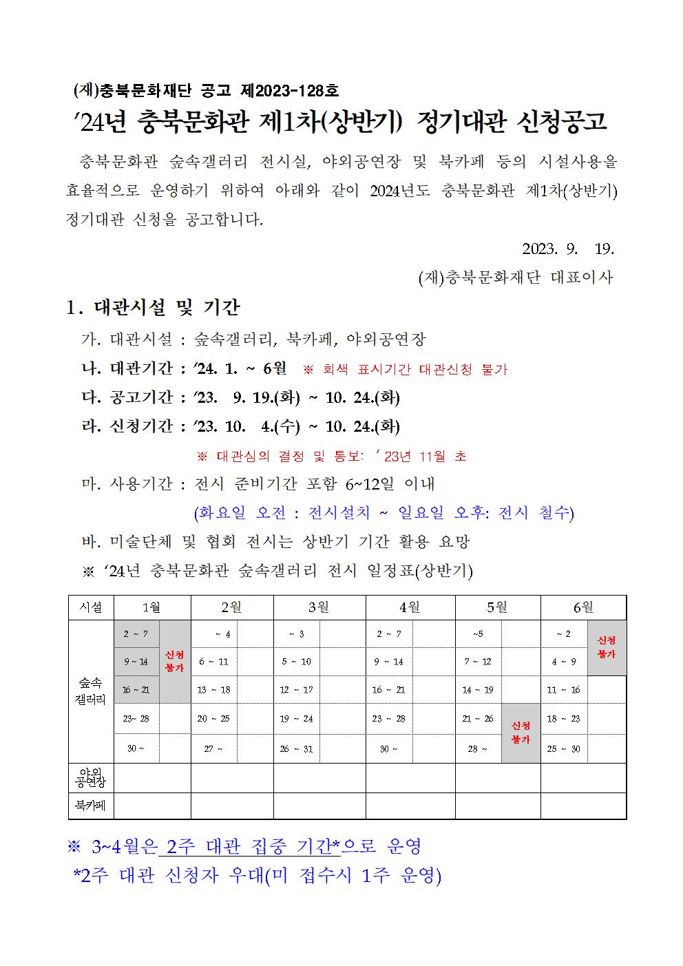 | 2024년 충북문화관 제1차(상반기) 정기대관 신청공고 | |||||