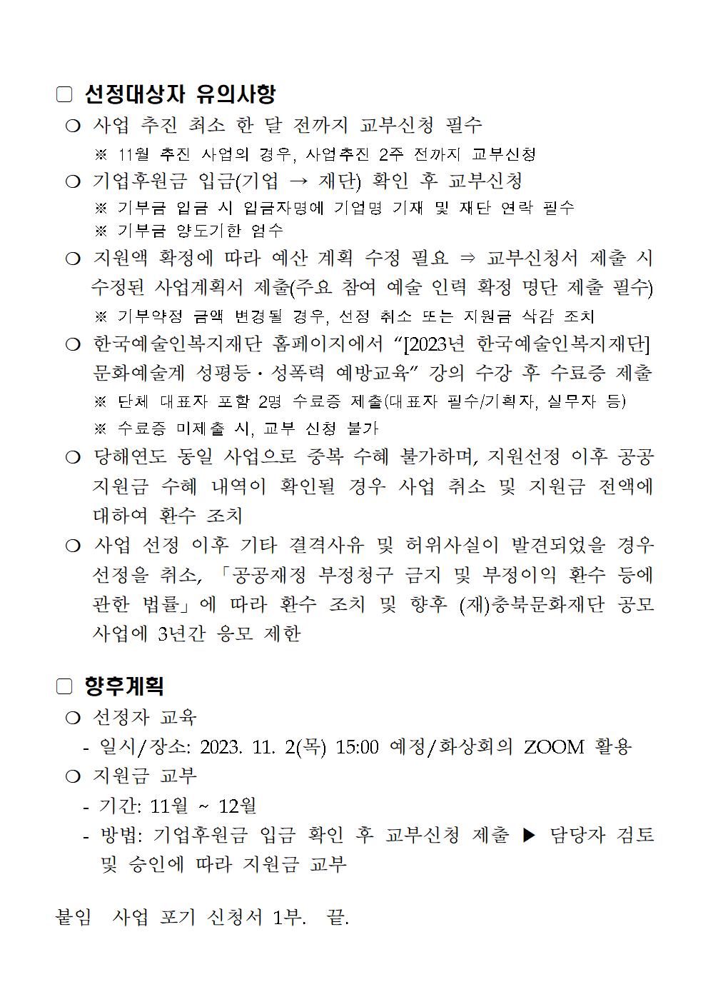 | 2023년 문화예술후원 매칭사업 3차 공모 선정 결과 | |||||