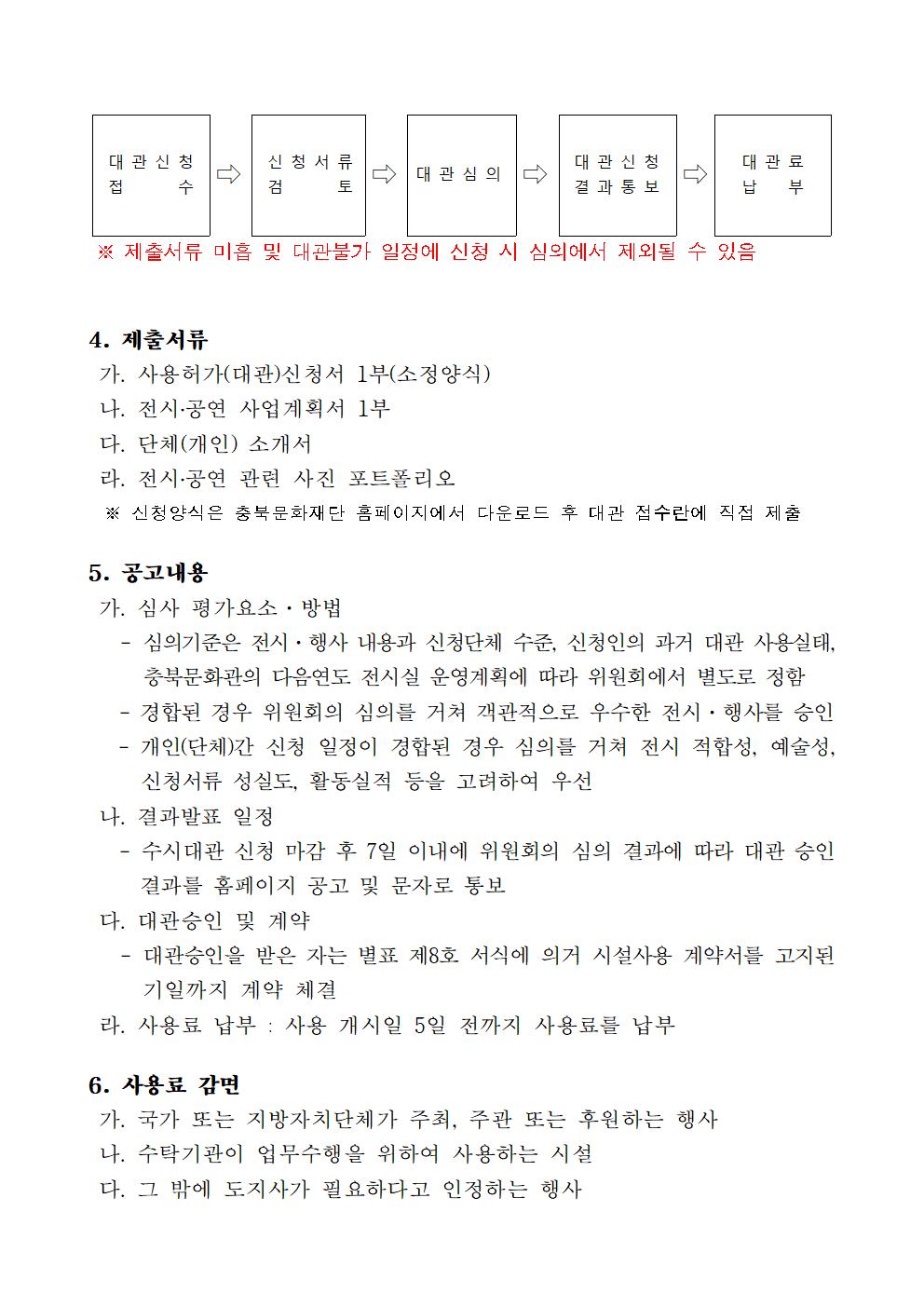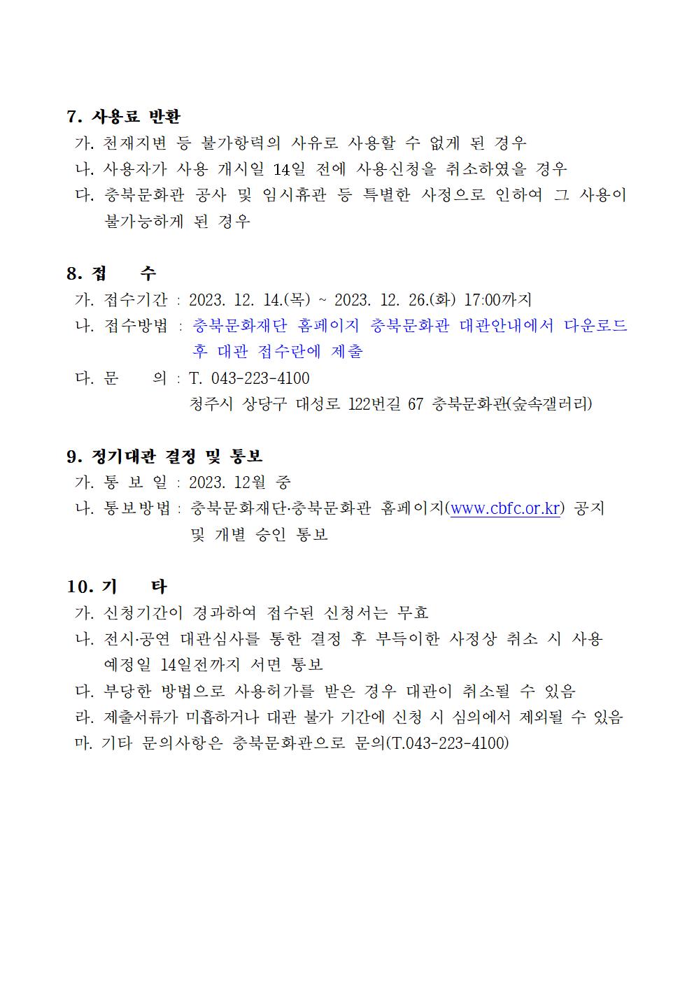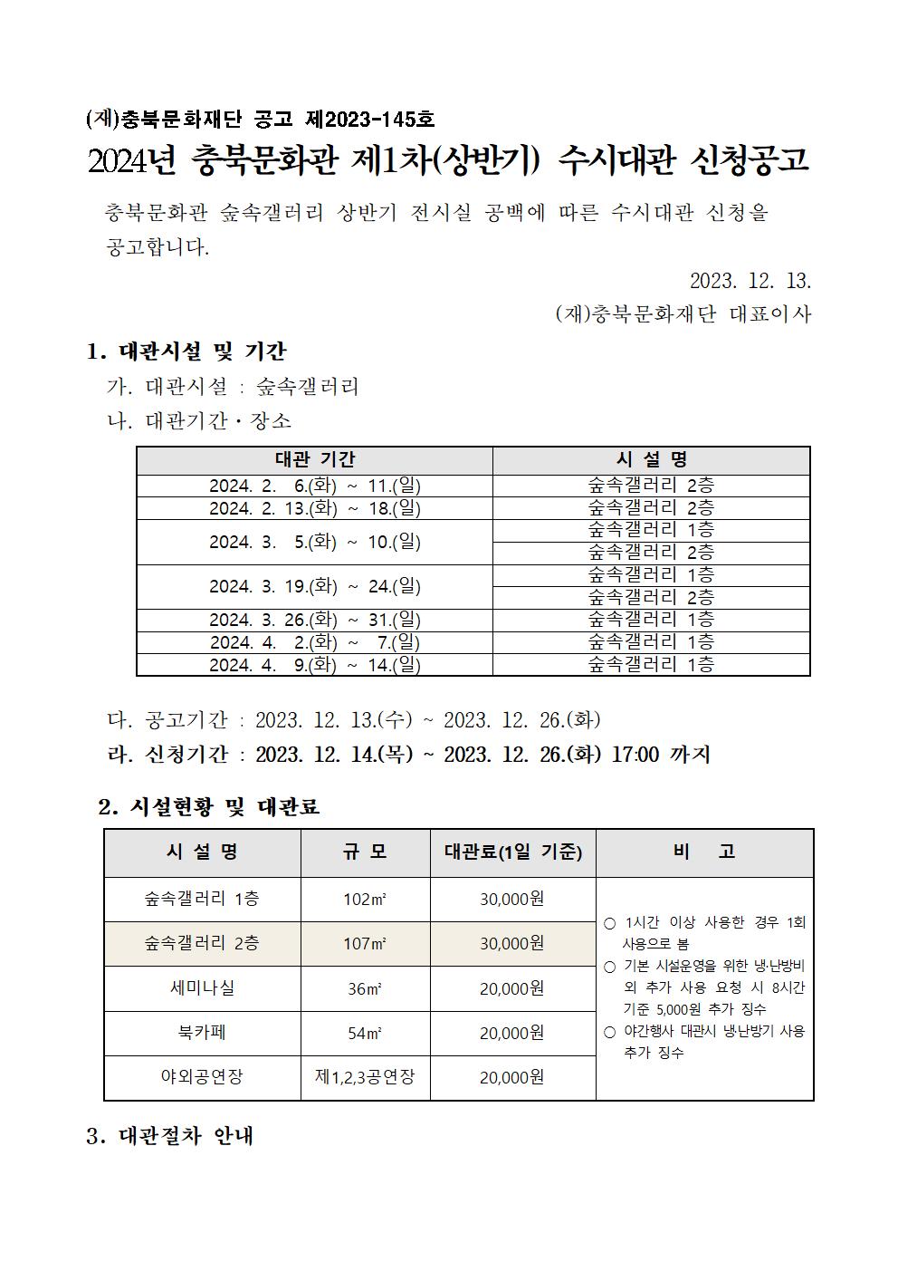 | 2024 충북문화관 제1차(상반기) 수시대관 신청공고 | |||||