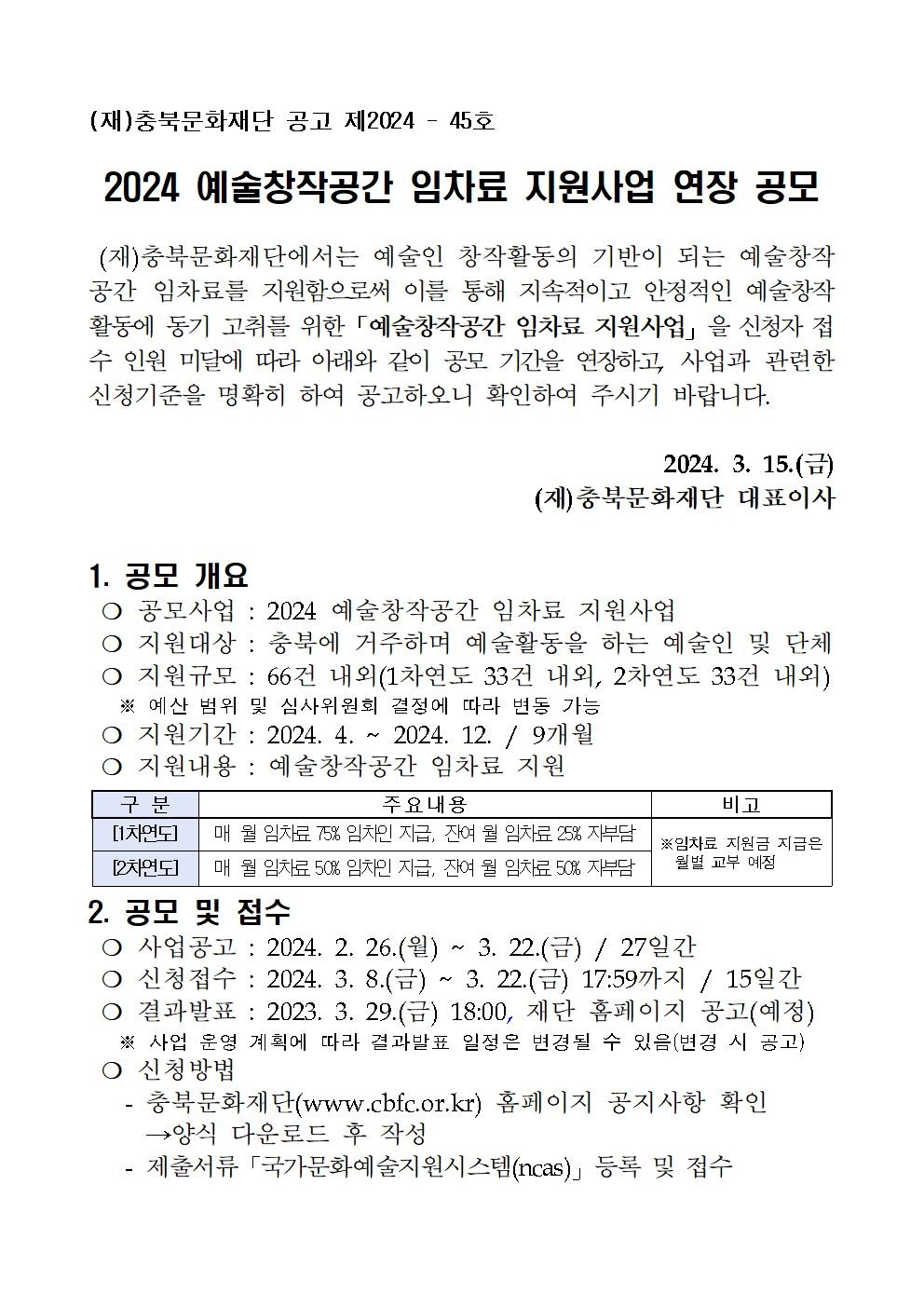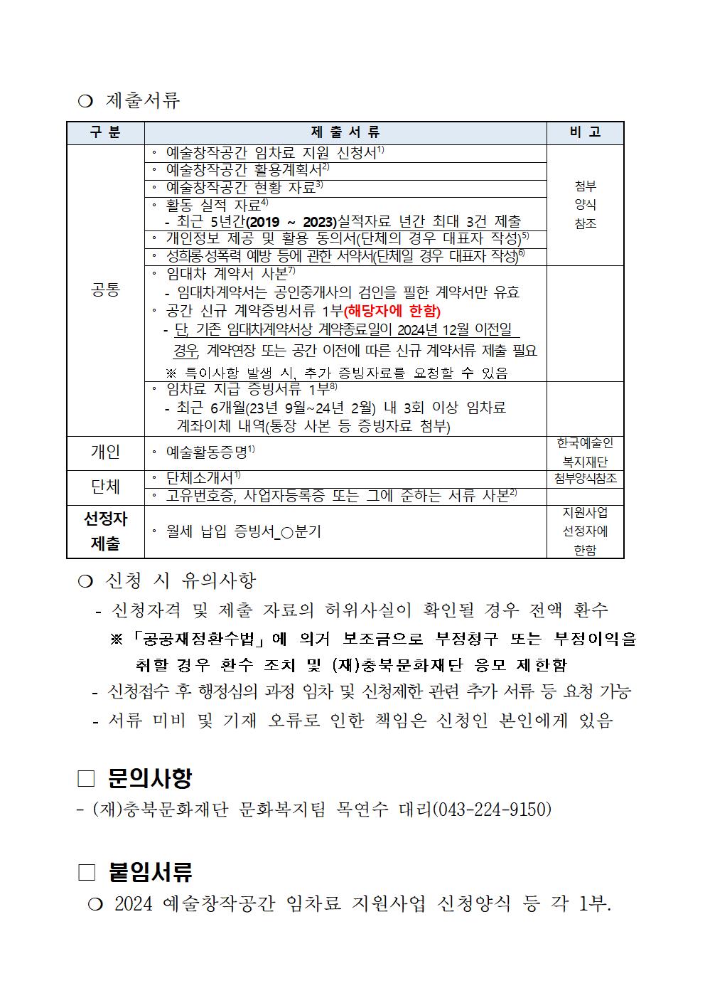 | 2024 예술창작공간 임차료지원사업 공모 | |||||