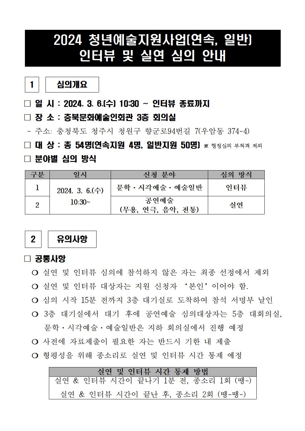 | 2024 청년예술지원사업 인터뷰 및 실연 심의 안내 | |||||