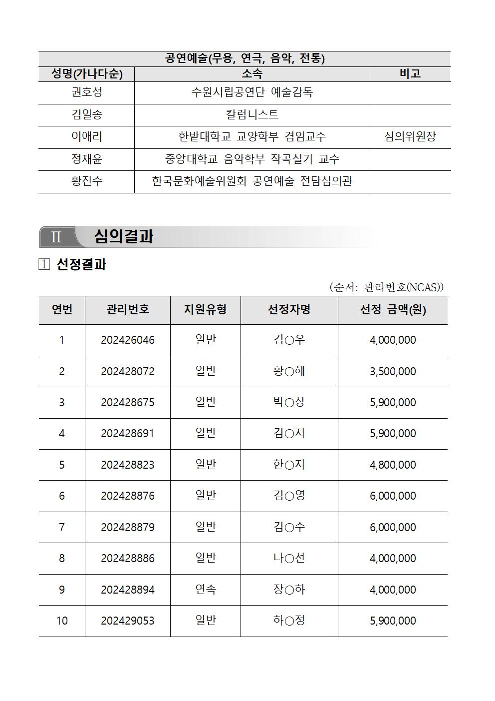 | 2024 청년예술지원사업 공모 선정결과 | |||||