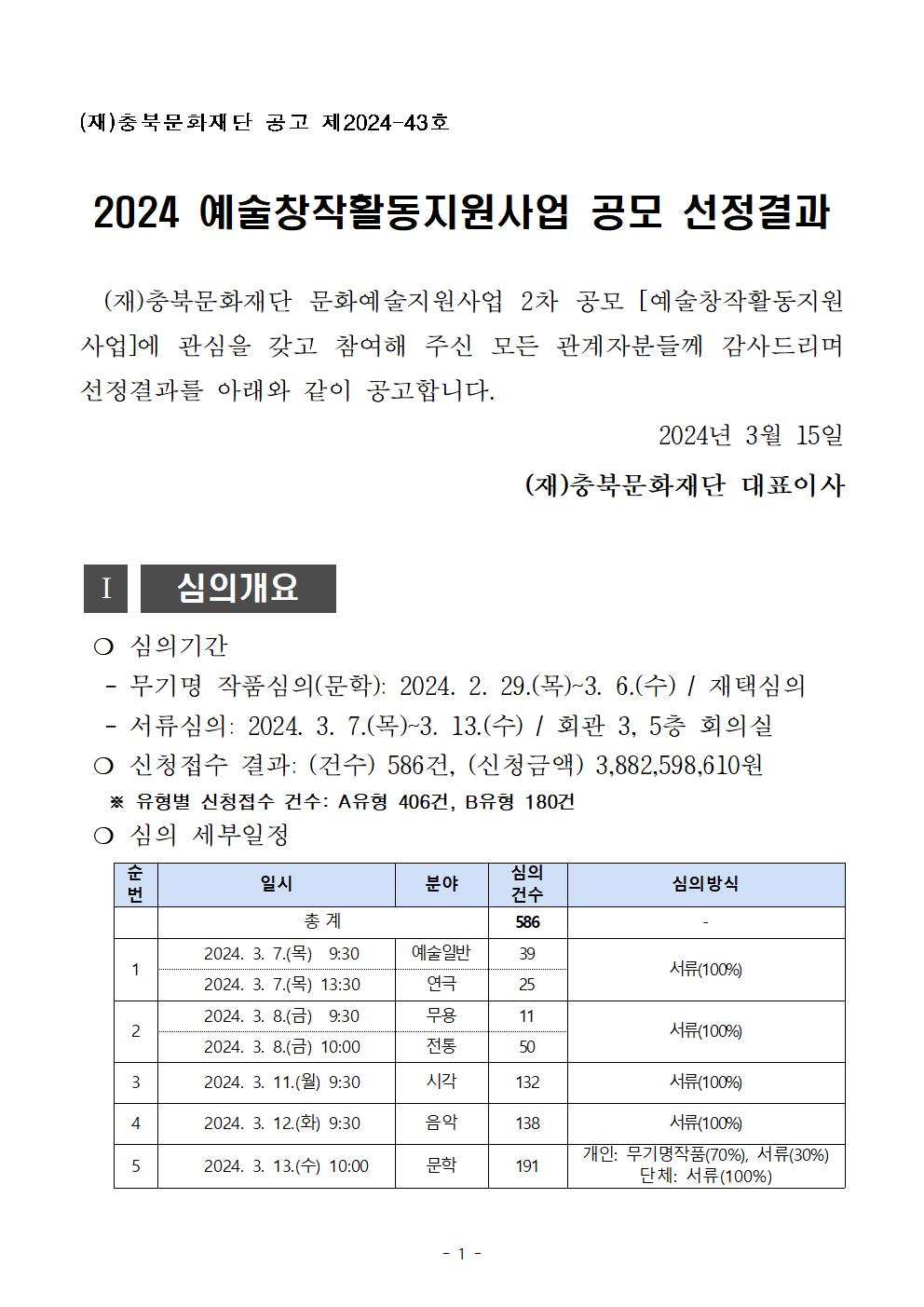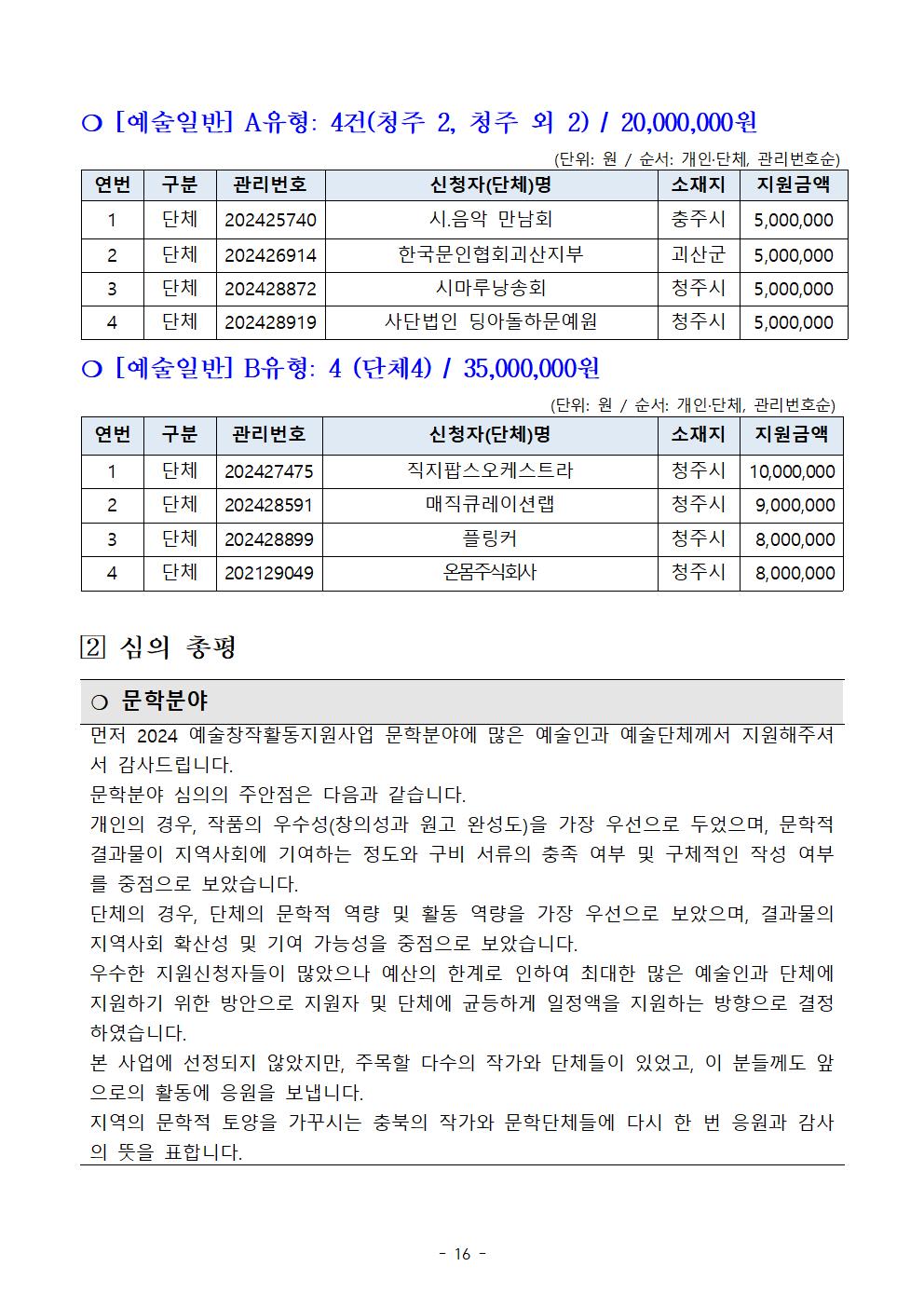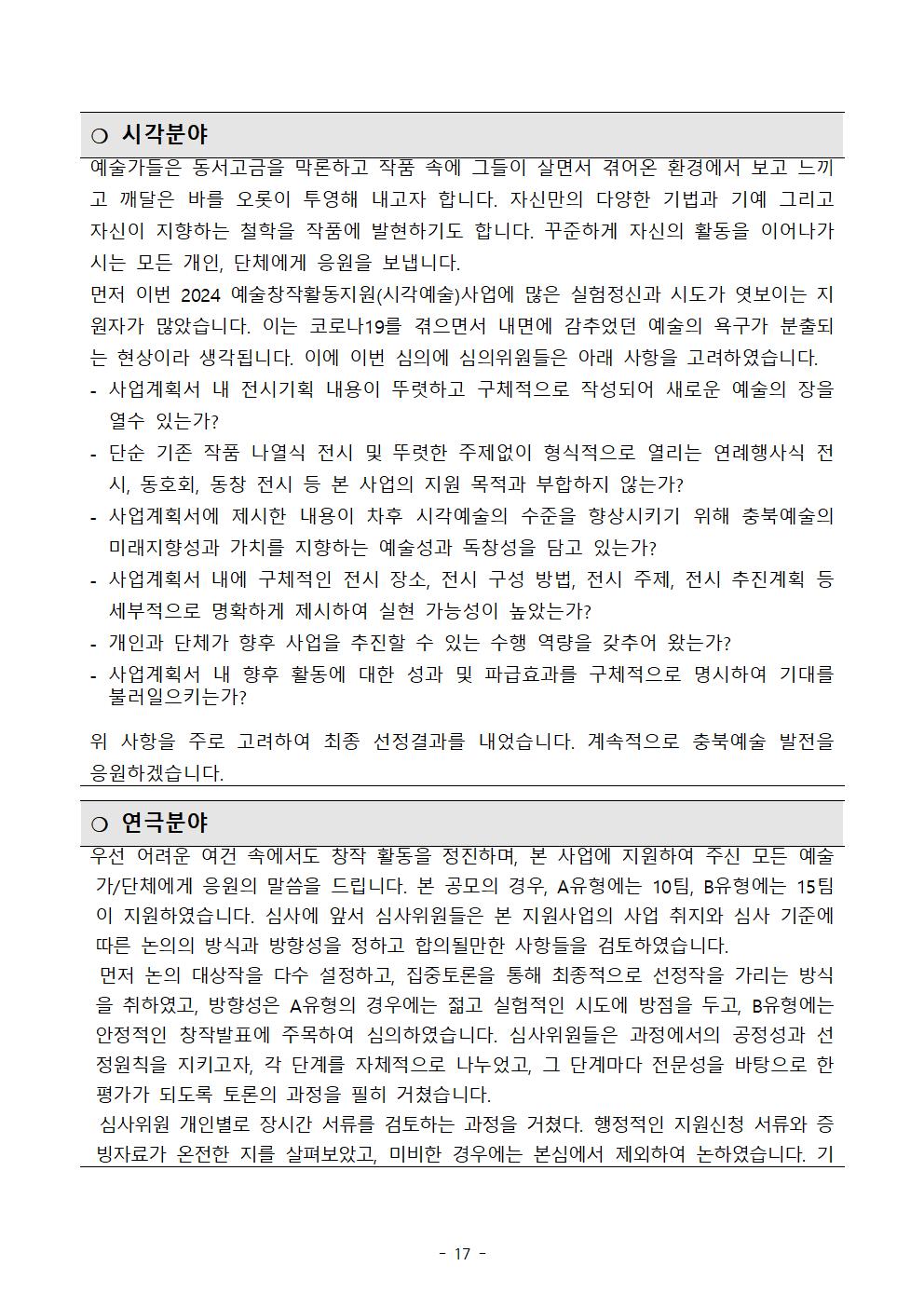 | 2024 예술창작활동지원사업 공모 선정결과 | |||||