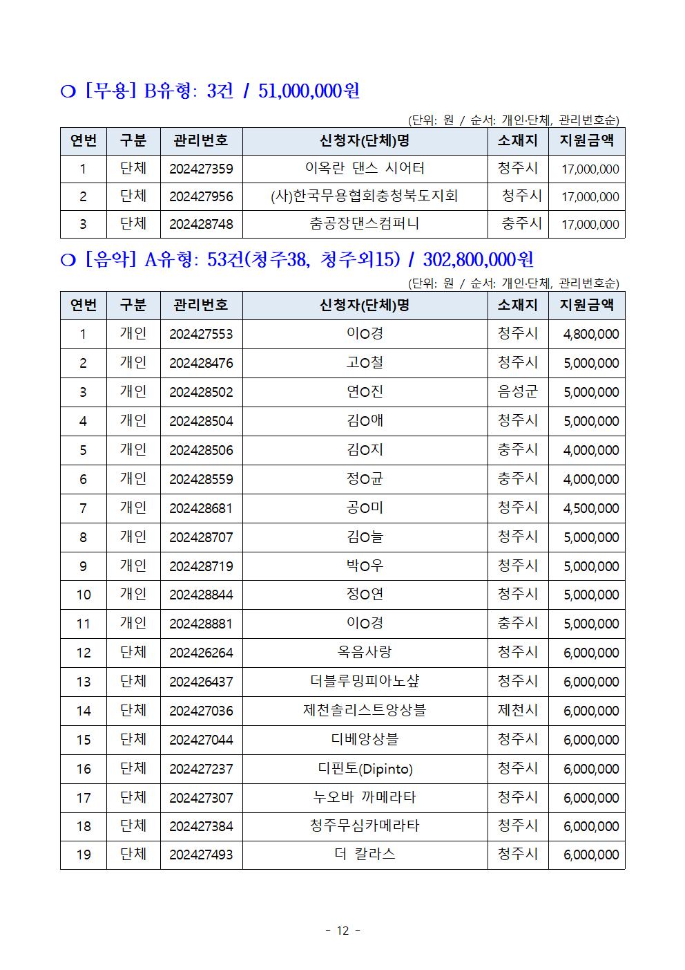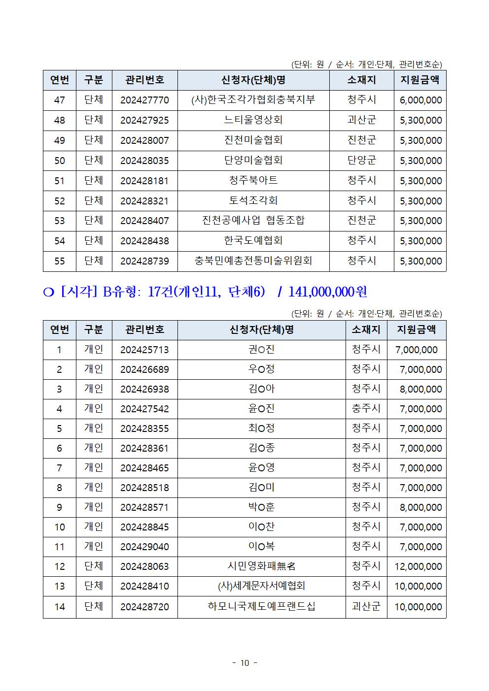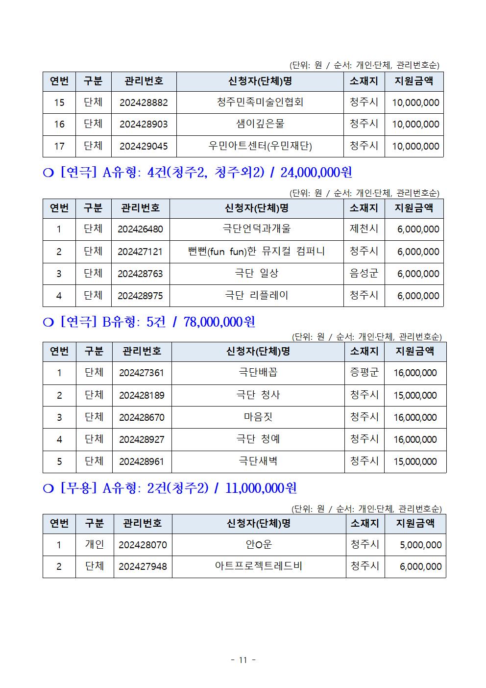 | 2024 예술창작활동지원사업 공모 선정결과 | |||||