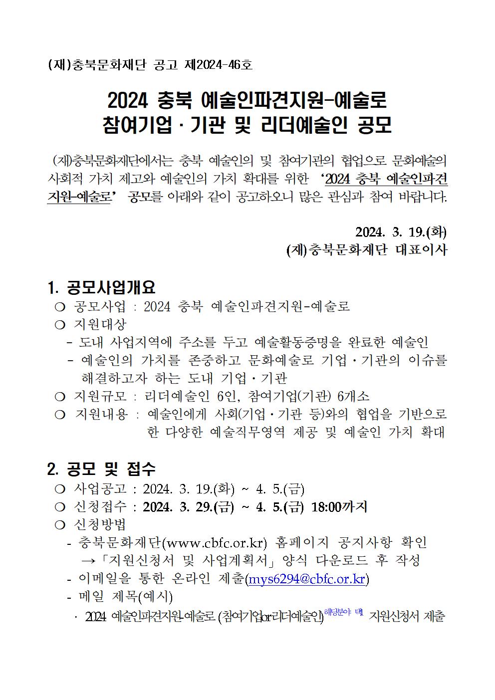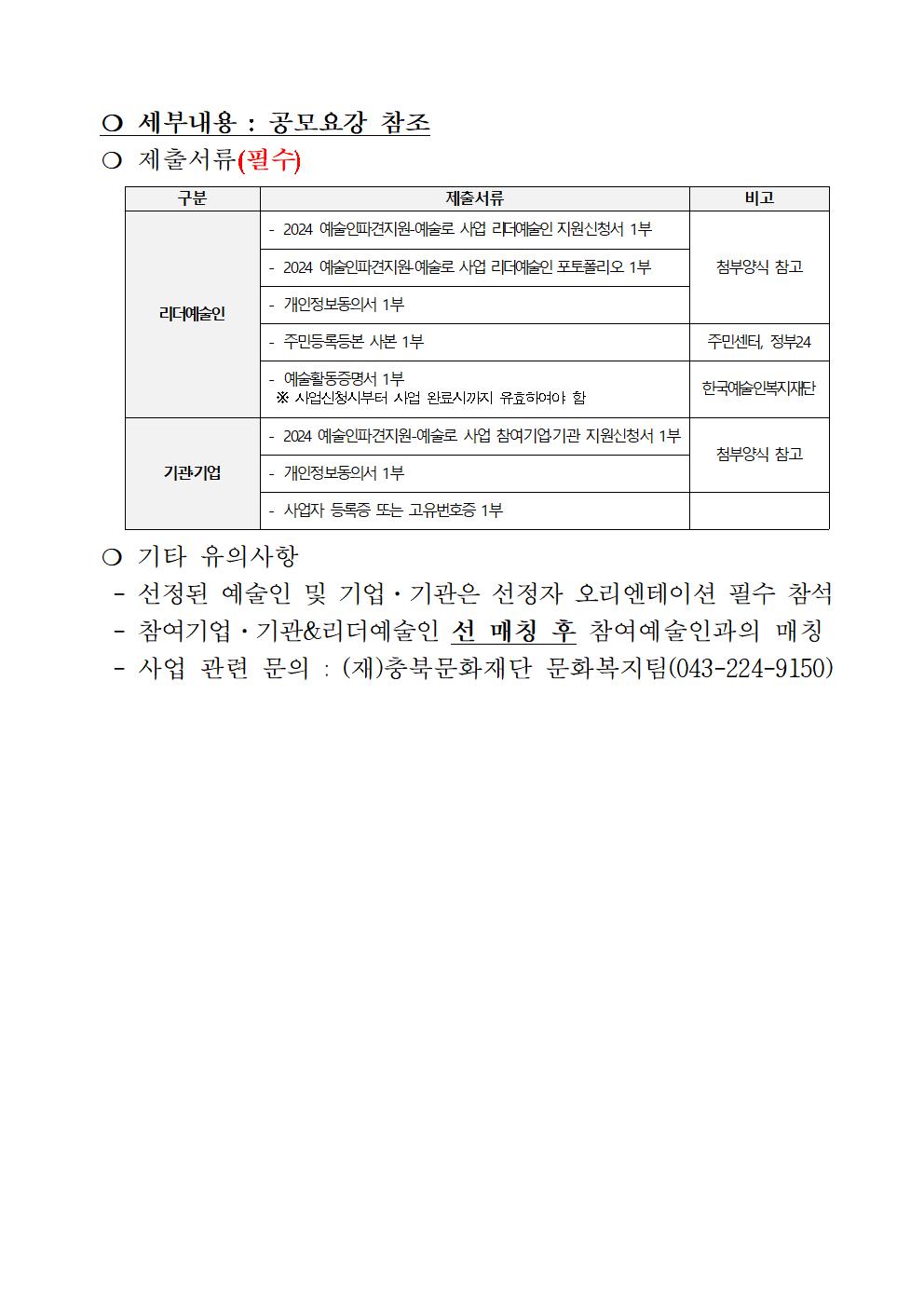 | 2024 예술인파견지원-예술로 참여기업·기관 및 리더예술인 공모 | |||||