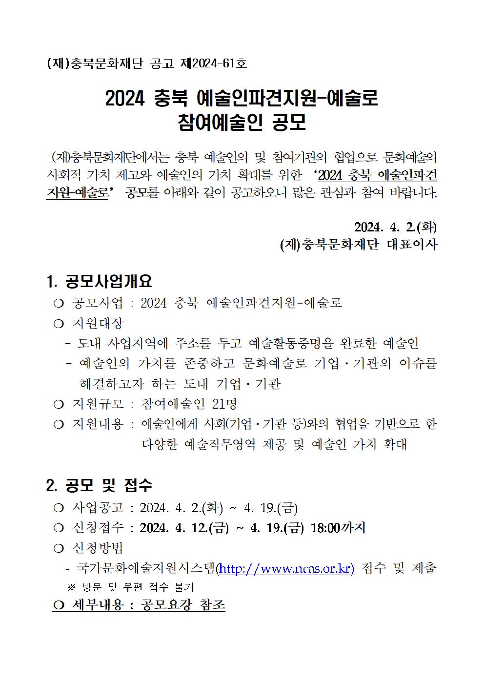 | 작성자 | 충북문화재단 | 등록일 | 2024/04/02 | 조회 | 1638 |