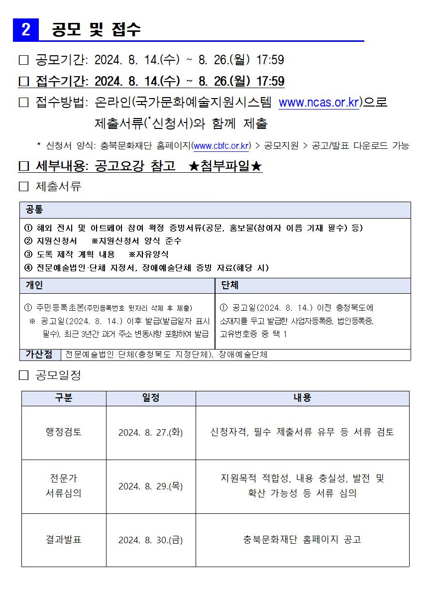 | 작성자 | 충북문화재단 | 등록일 | 2024/08/14 | 조회 | 3496 |