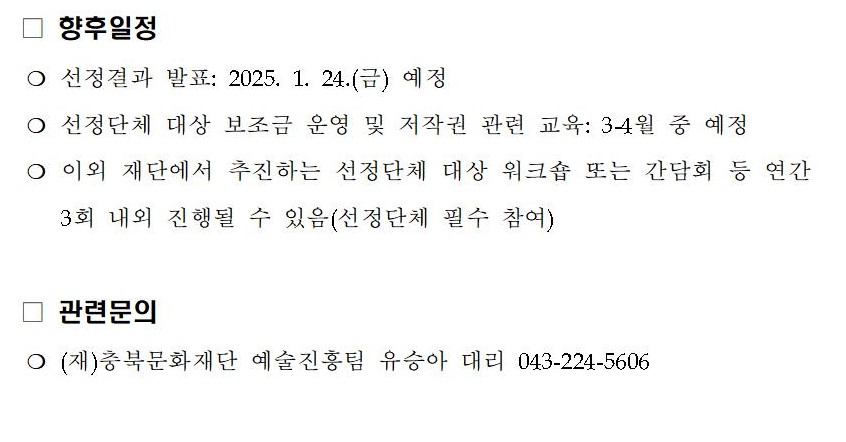 | 작성자 | 충북문화재단 | 등록일 | 2025/01/17 | 조회 | 1918 |