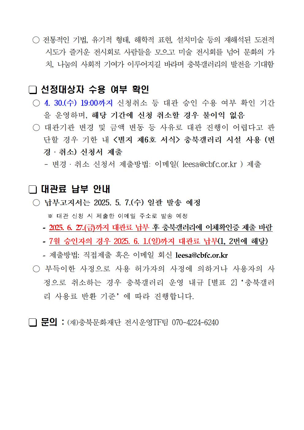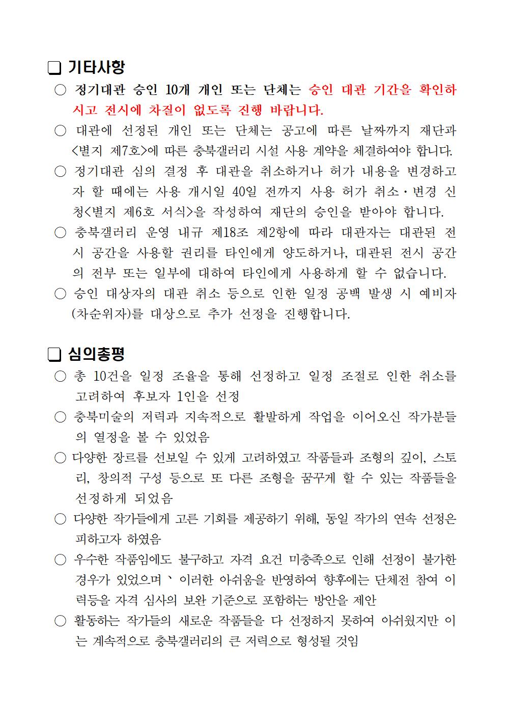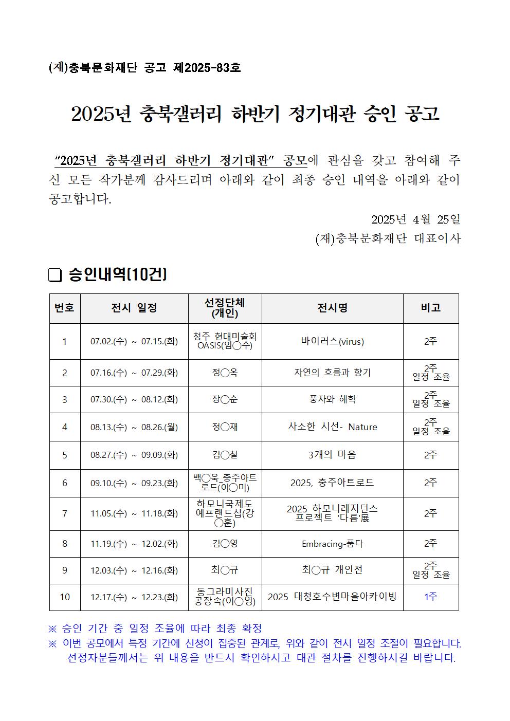 | 2025년 충북갤러리 하반기 정기대관 승인 공고 | |||||