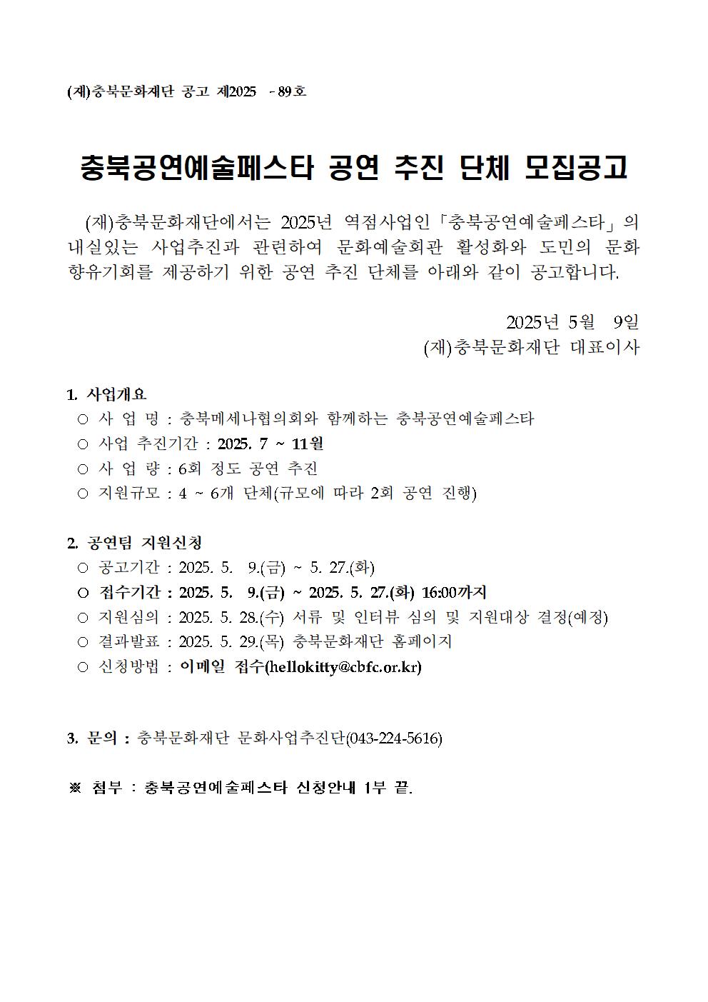 | 2025충북공연페스타 공연단체 모집공고 | |||||