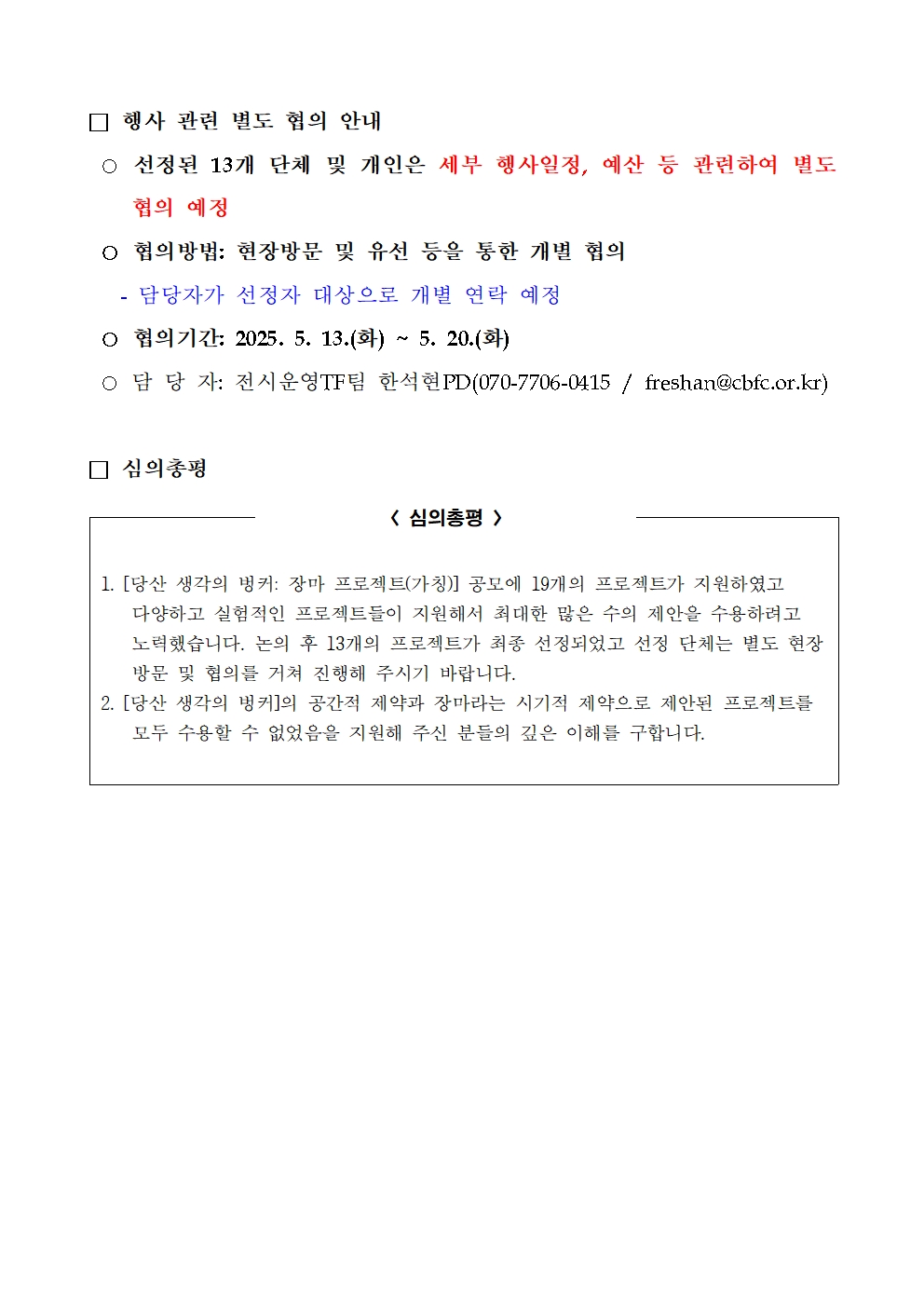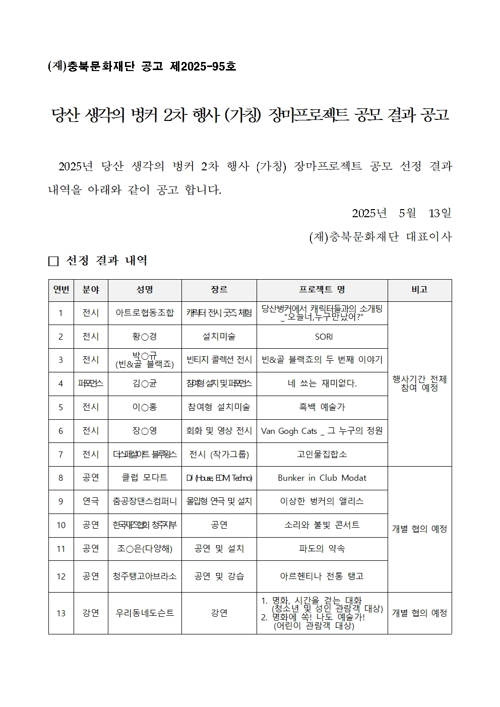 | 2025년 [당산 생각의 벙커: 장마 프로젝트(가칭)] 공개모집 결과 발표 | |||||
