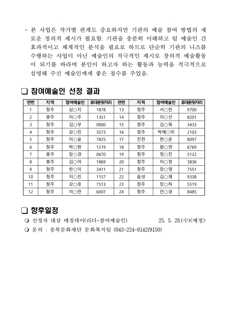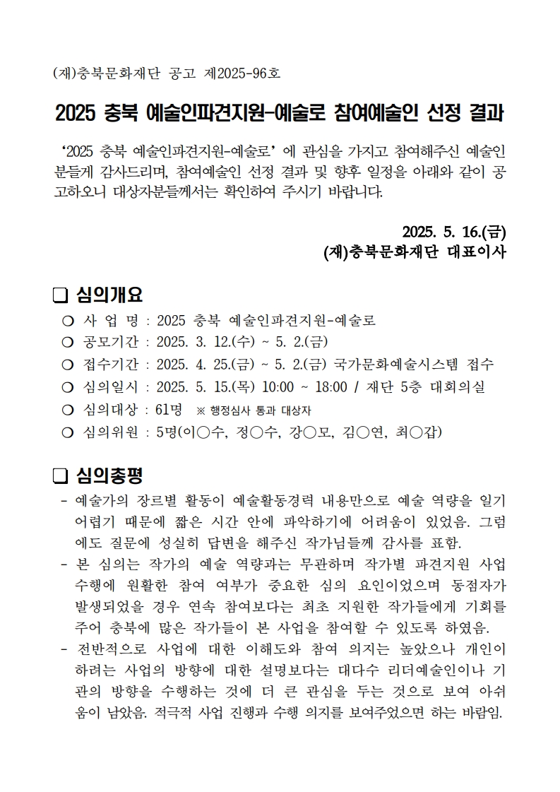 | 2025 예술인파견지원-예술로 참여예술인 선정 결과 공고 | |||||