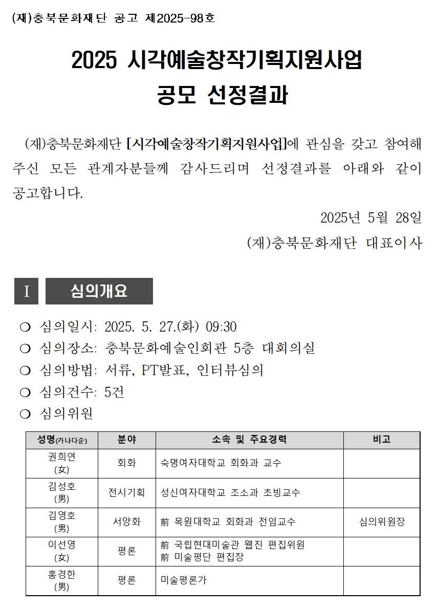 | 작성자 | 충북문화재단 | 등록일 | 2025/05/28 | 조회 | 2243 |