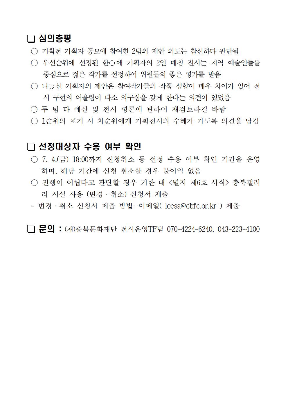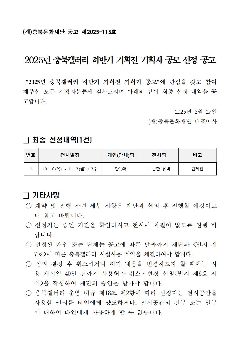 | 2025년 충북갤러리 하반기 기획전 기획자 공모 선정 공고 | |||||