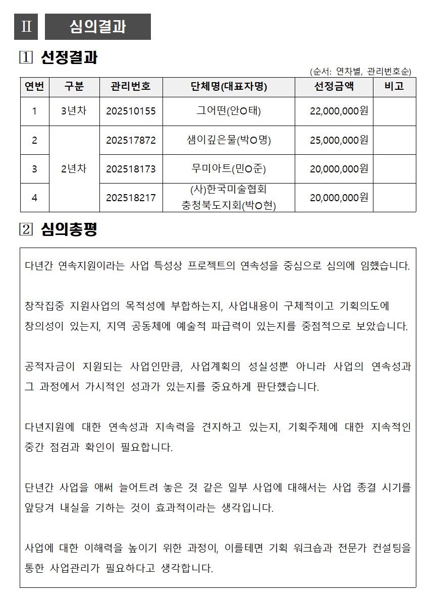 | 2026년 창작집중지원사업(시각예술) 연속지원 선정결과 | |||||