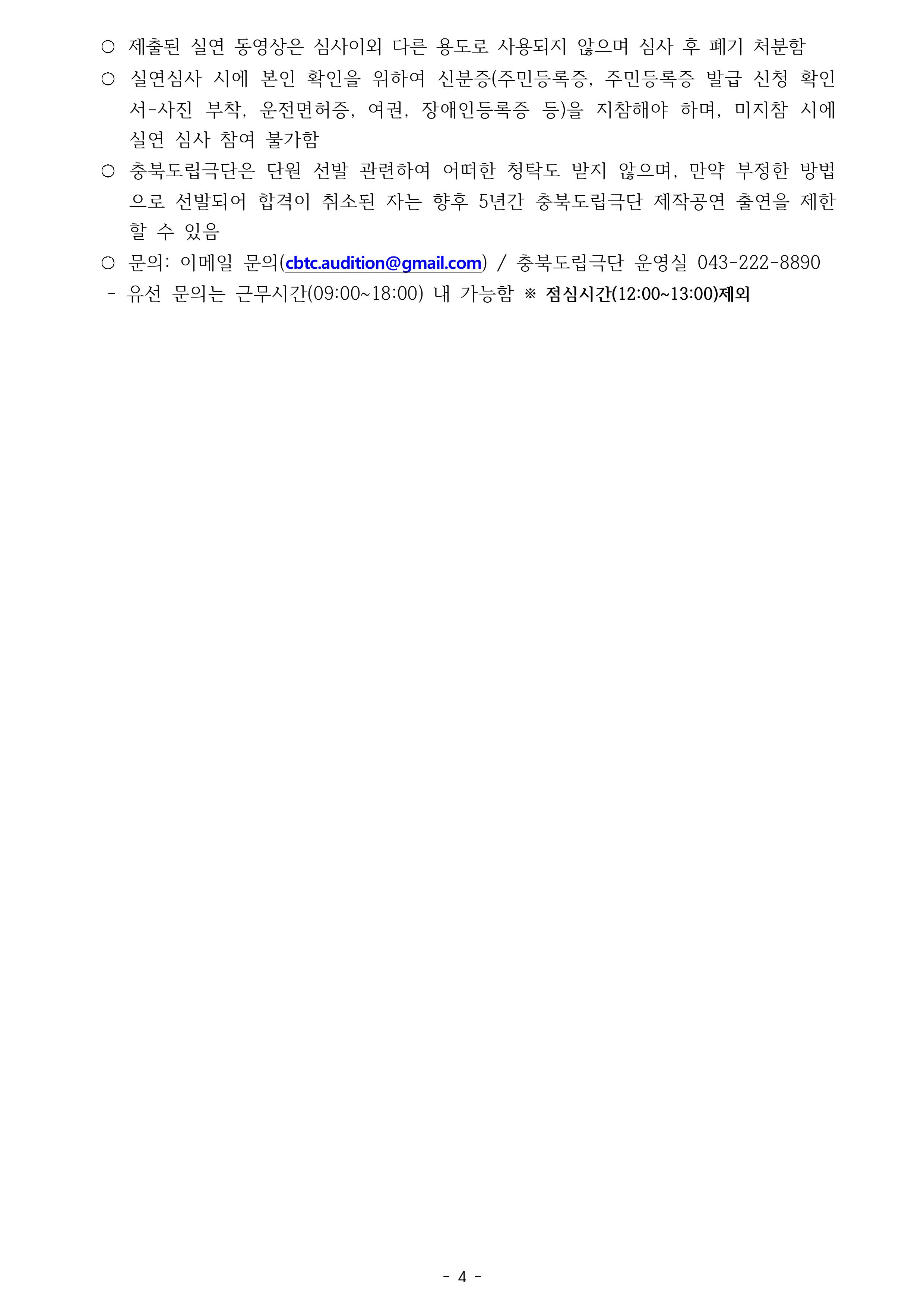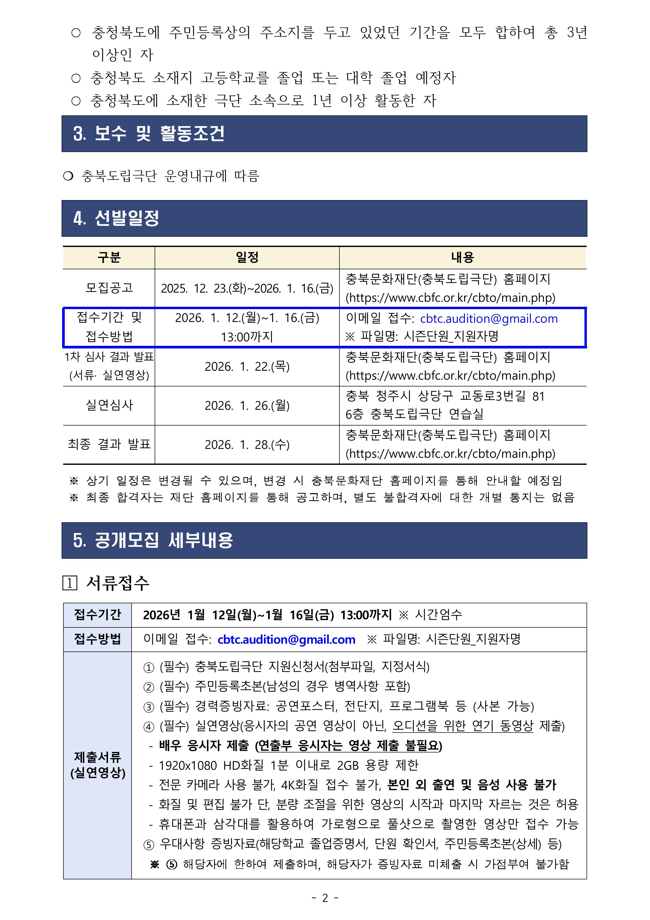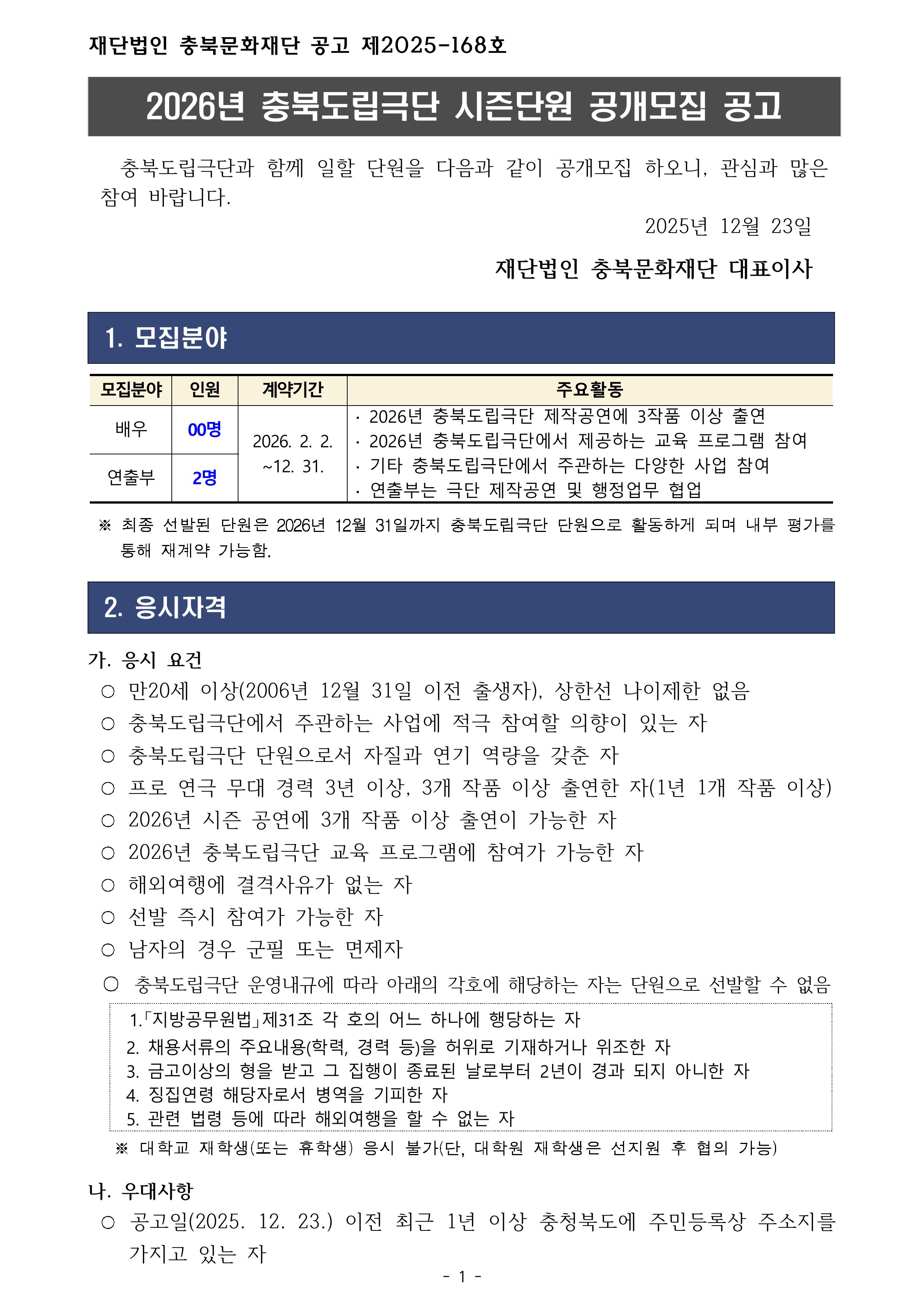 | 2026년 충북도립극단 시즌단원 공개모집 | |||||