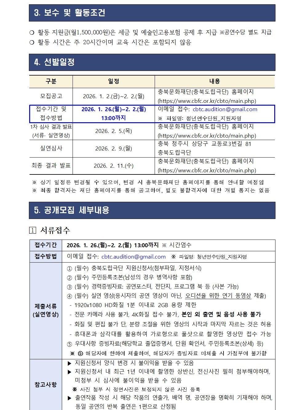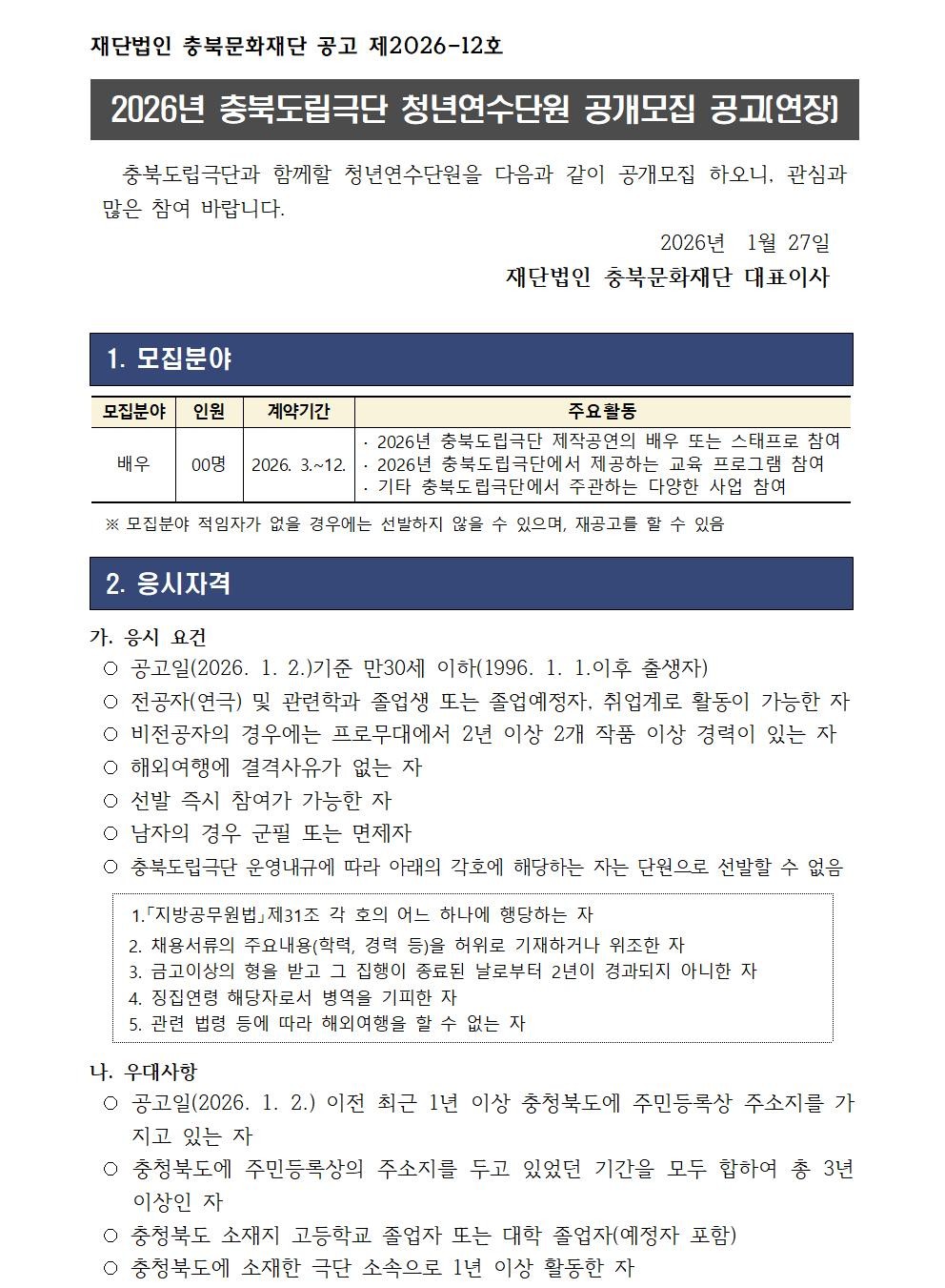 | 2026년 충북도립극단 청년연수단원 공개모집(연장) | |||||