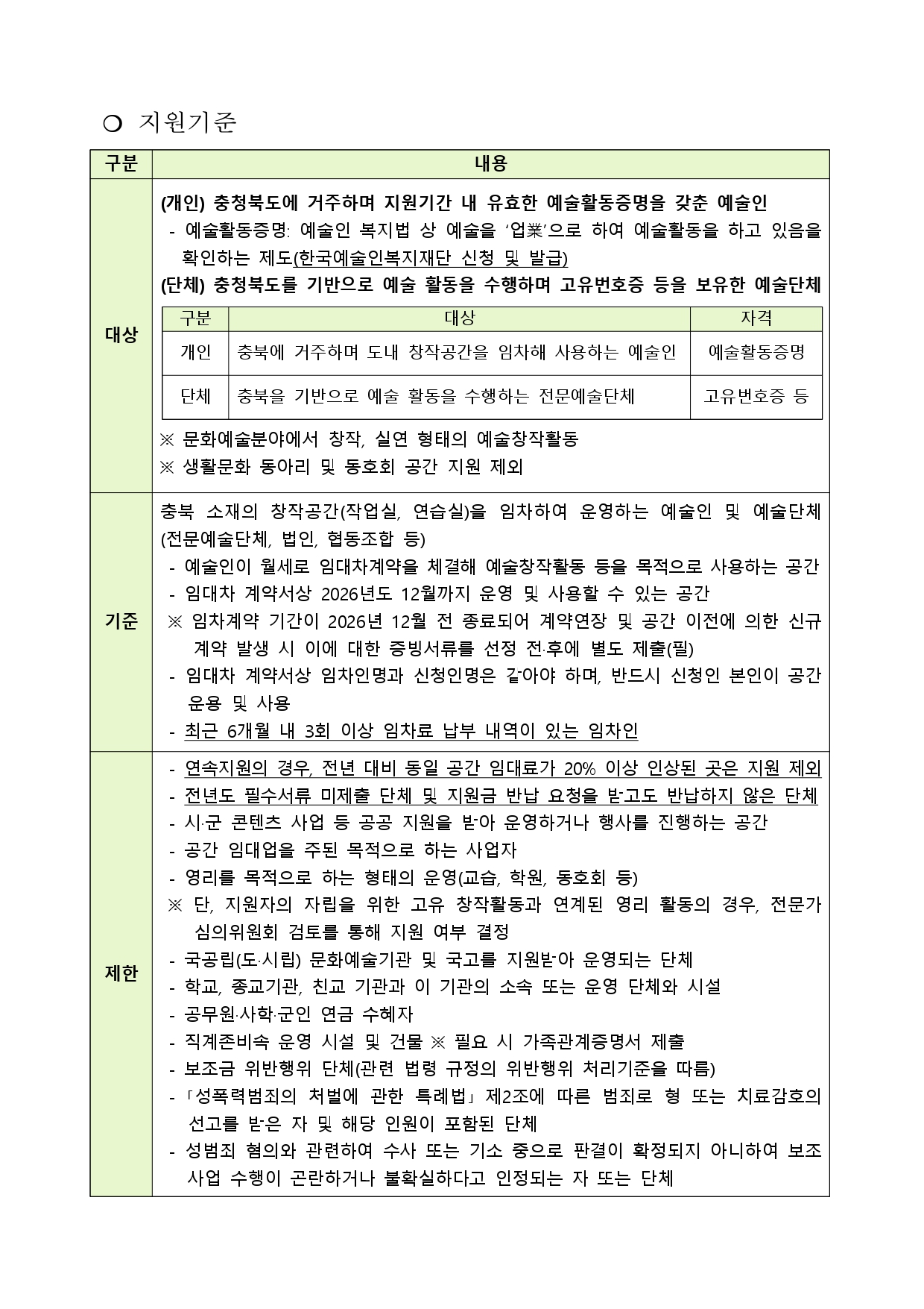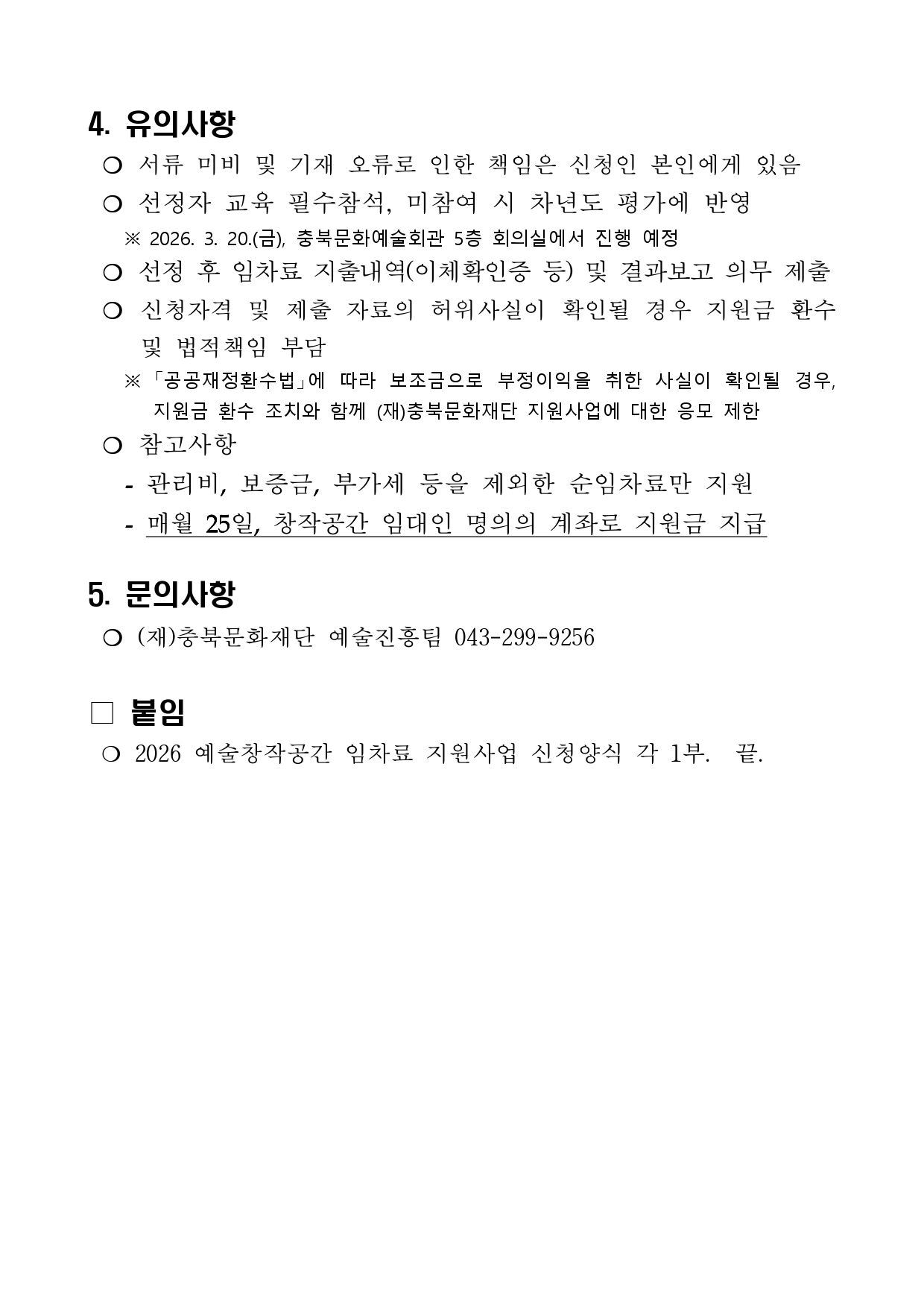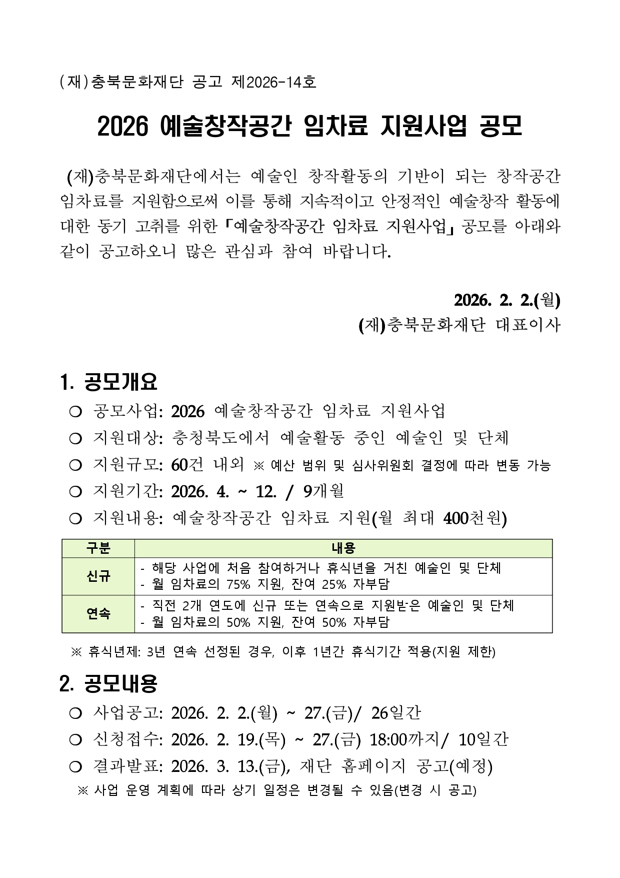| 2026 예술창작공간 임차료 지원사업 공모 | |||||