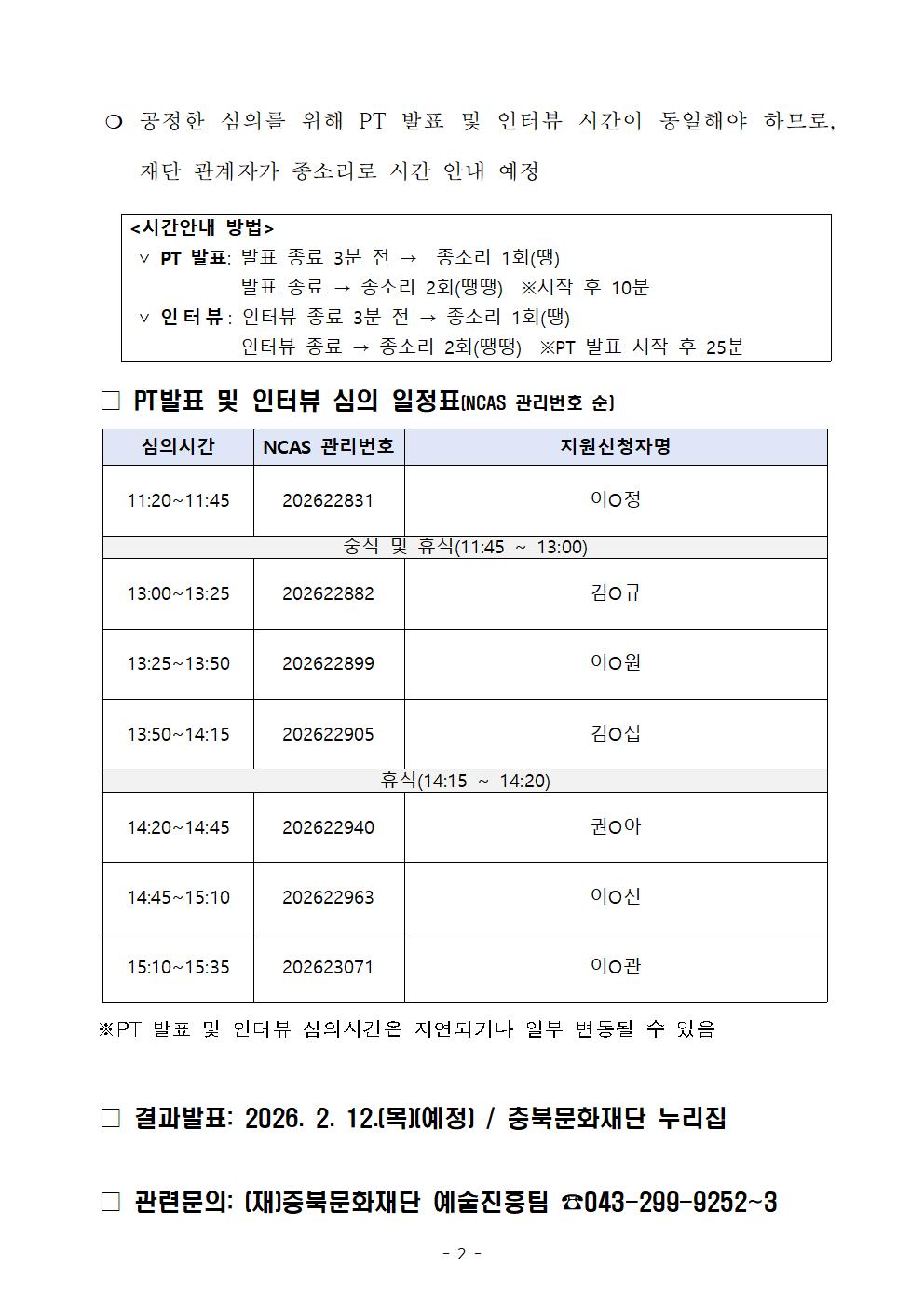 | 2026 시각예술창작기획지원사업 PT 발표 및 인터뷰 심의 안내 | |||||