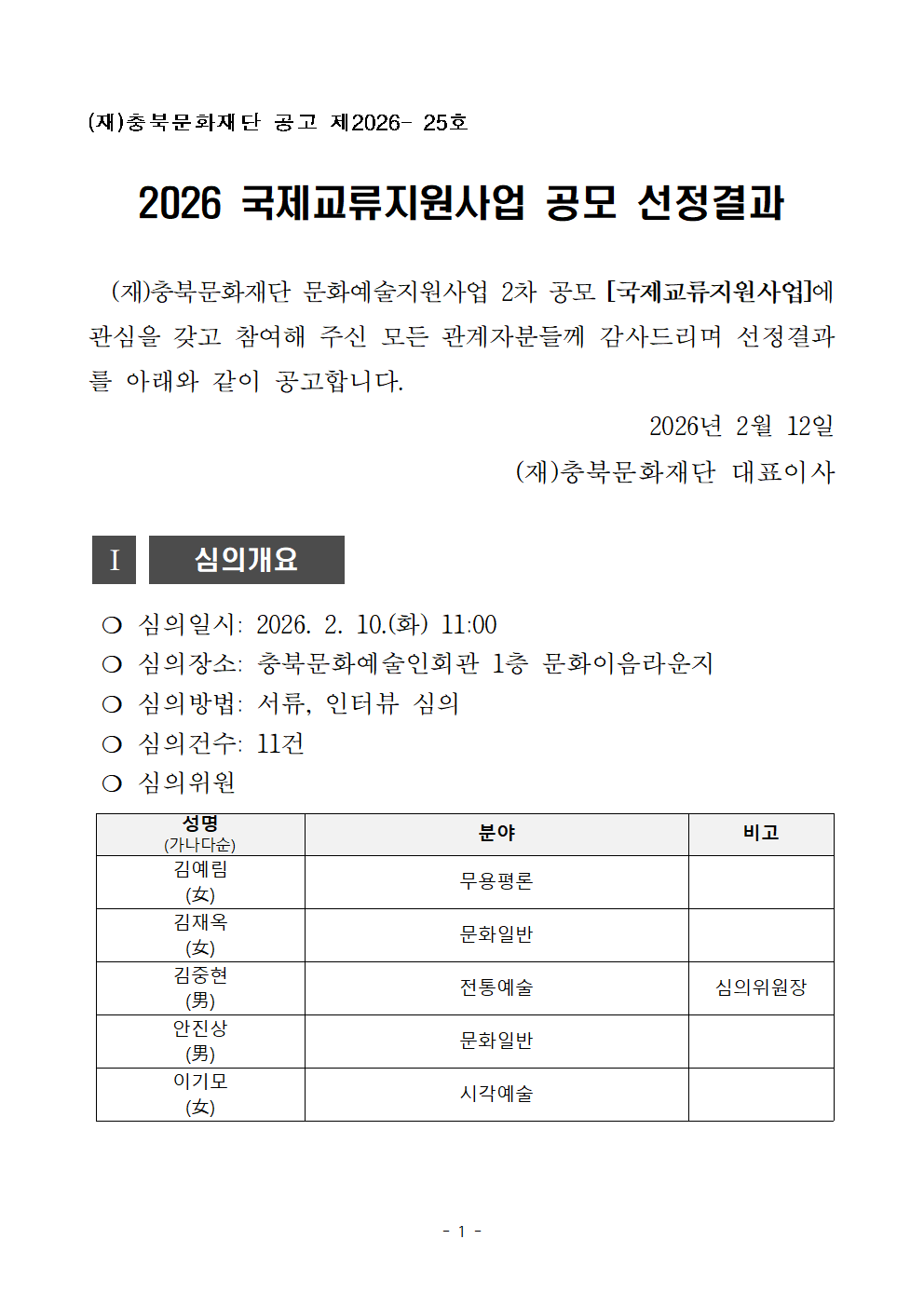 | 작성자 | 충북문화재단 | 등록일 | 2026/02/12 | 조회 | 1516 |