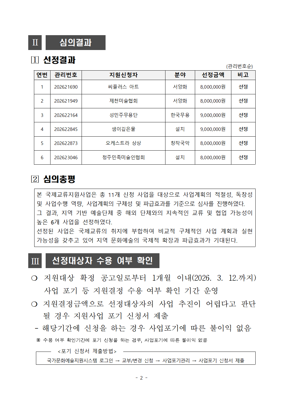 | 2026년 국제교류지원사업 공모 선정결과 | |||||