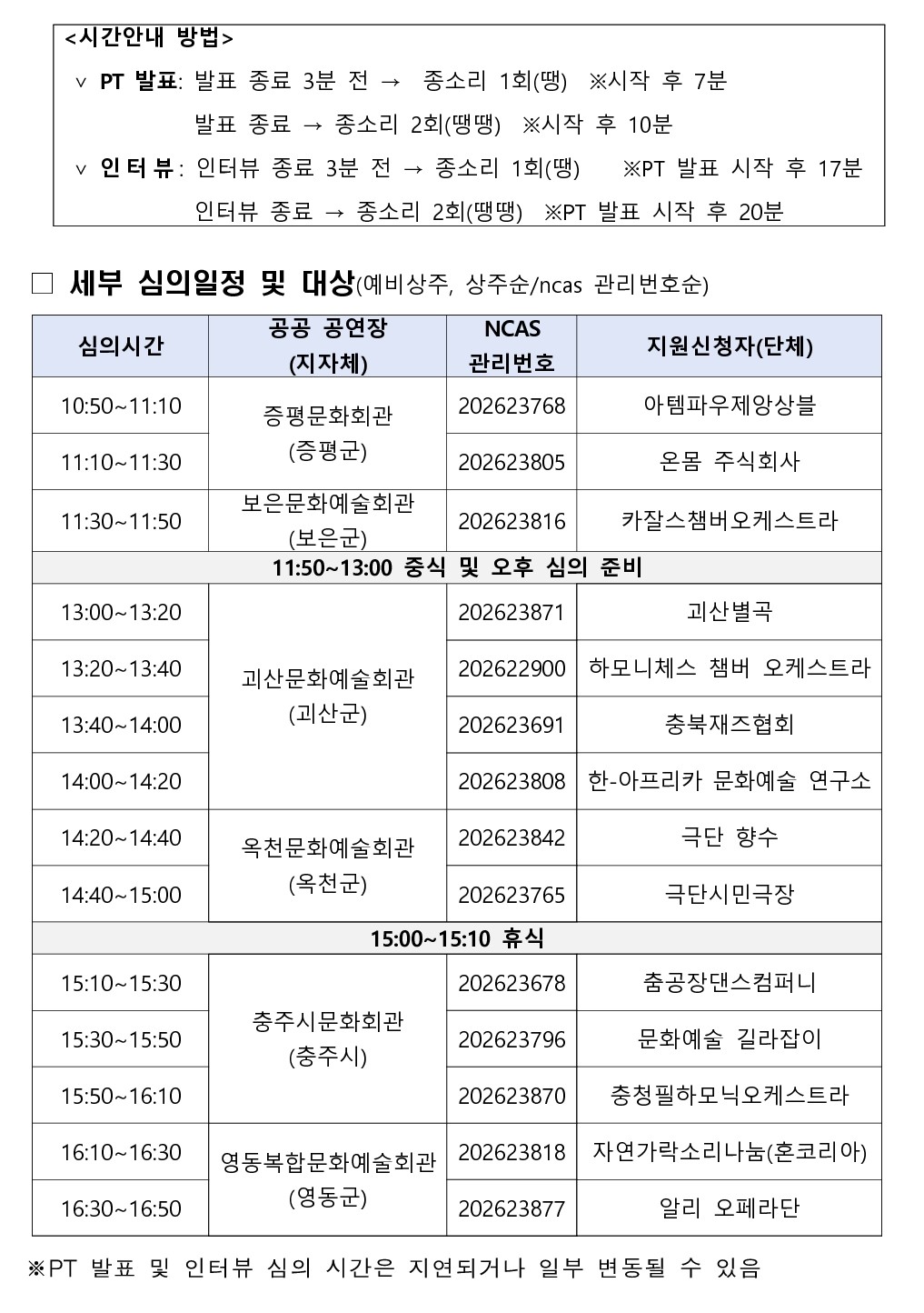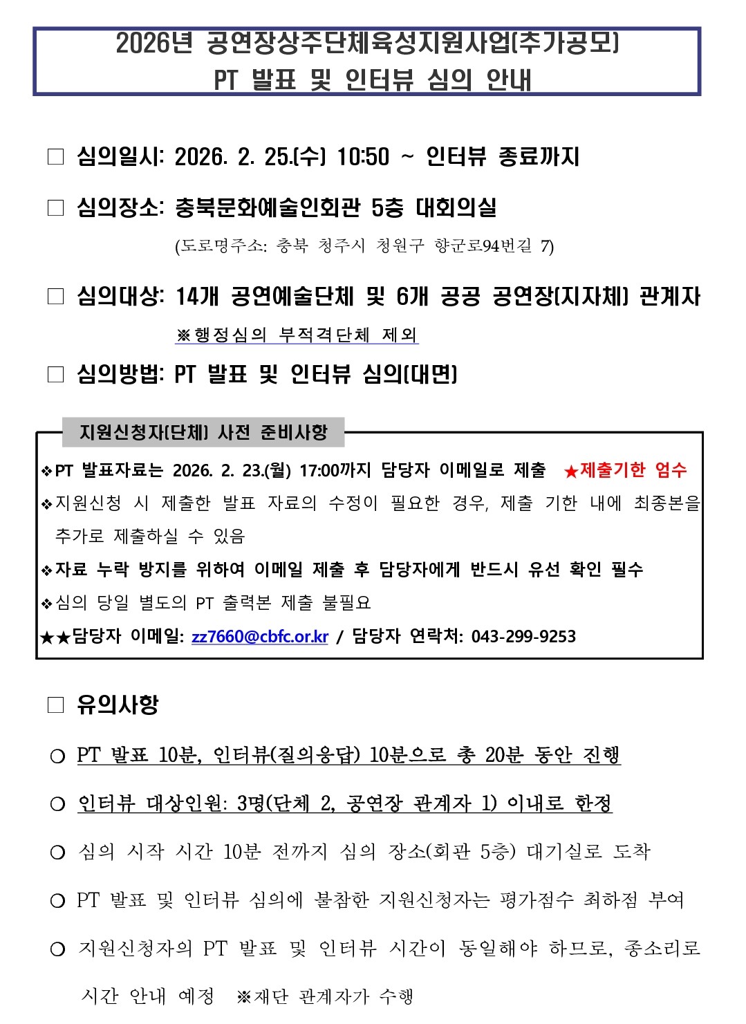 | 2026년 공연장상주단체육성지원사업 추가 공모 PT발표 및 인터뷰 심의 안내 | |||||