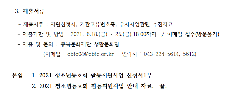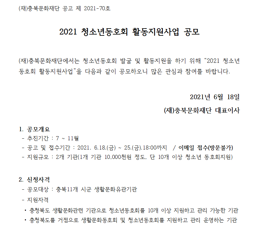 | 2021 청소년동호회 활동지원사업 공모 | |||||
